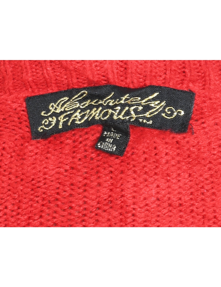 Animal design red christmas jumper with a drop shoulder and sequins.