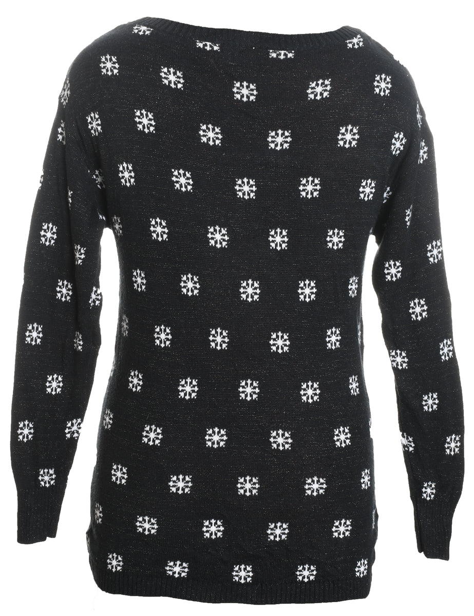 Animal design christmas jumper in black with lurex thread pattern and a drop shoulder.