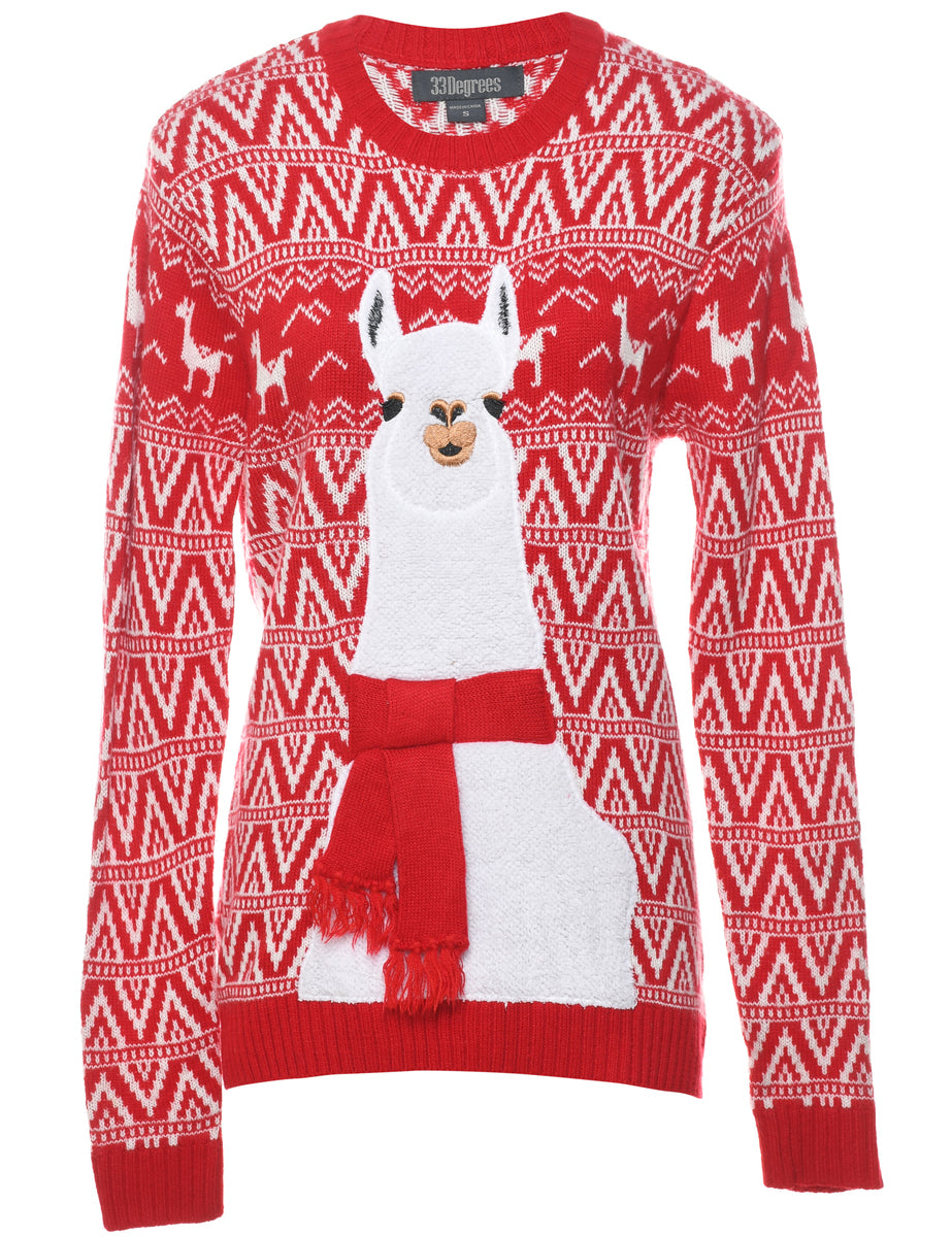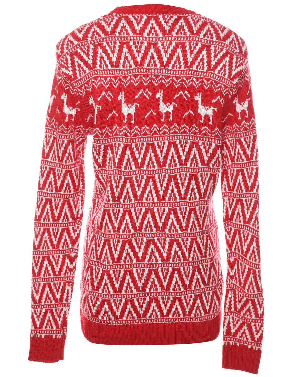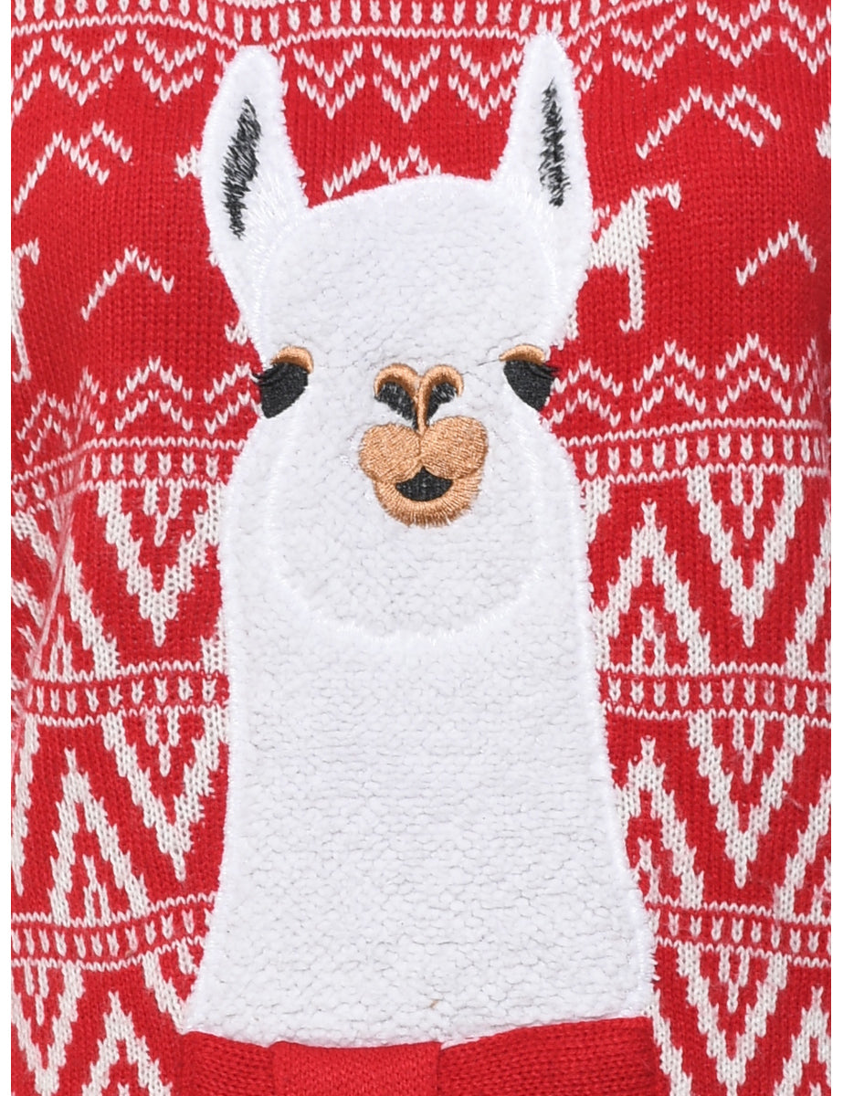 Animal design christmas jumper in red & white with a round neck and embroidery.