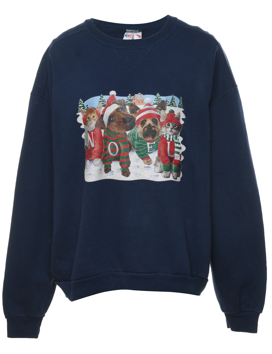 Animal design christmas sweatshirt in navy with a drop shoulder.