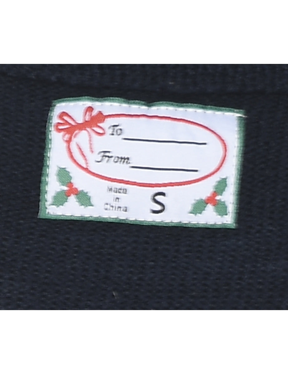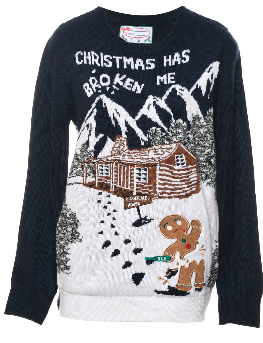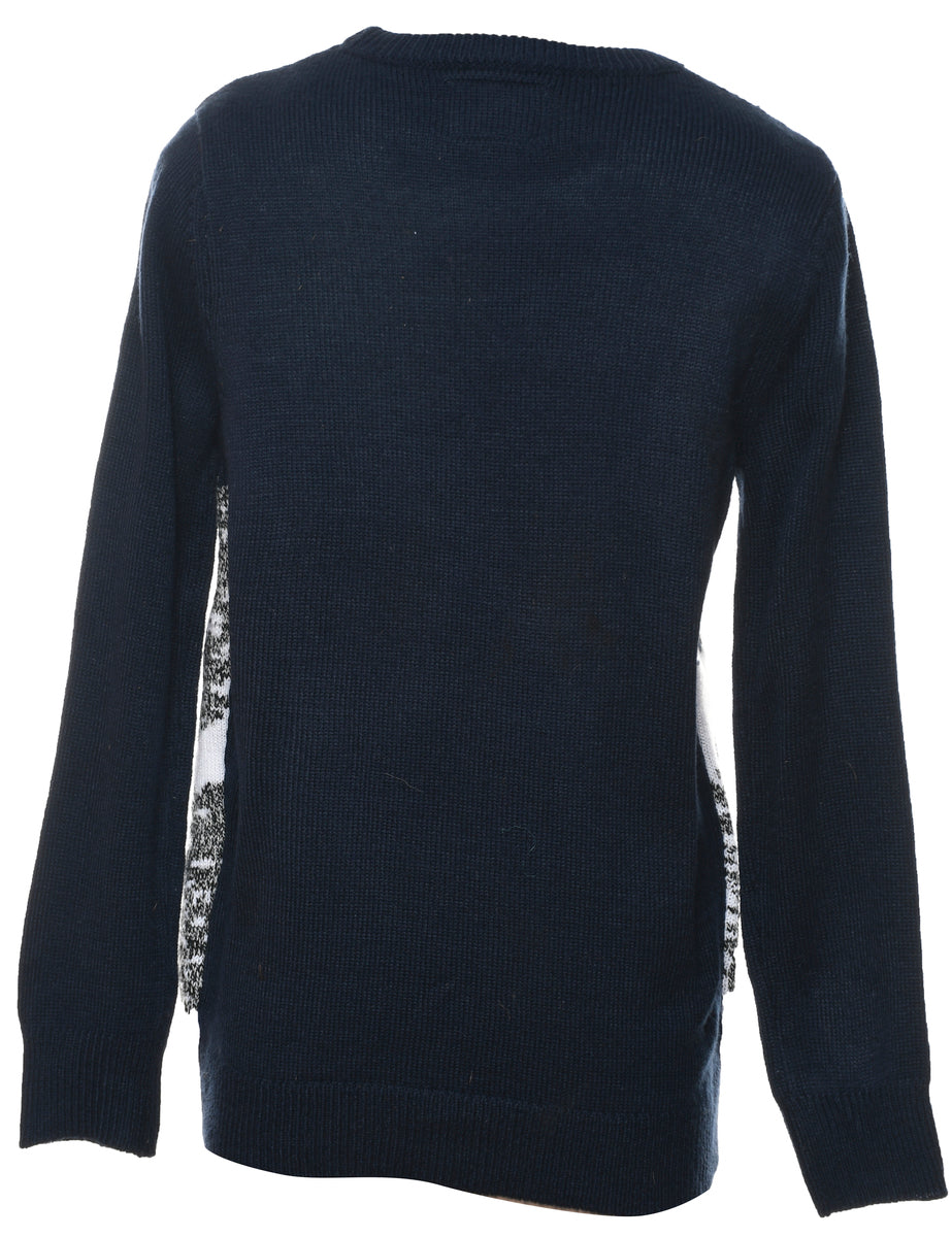 Festive season christmas jumper in multi-colour with , a ribbed neck and cuffs.