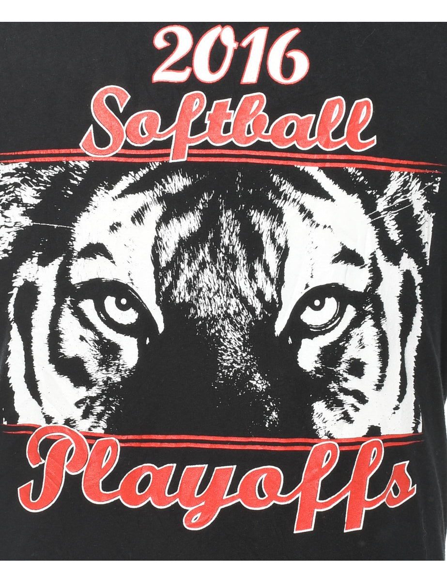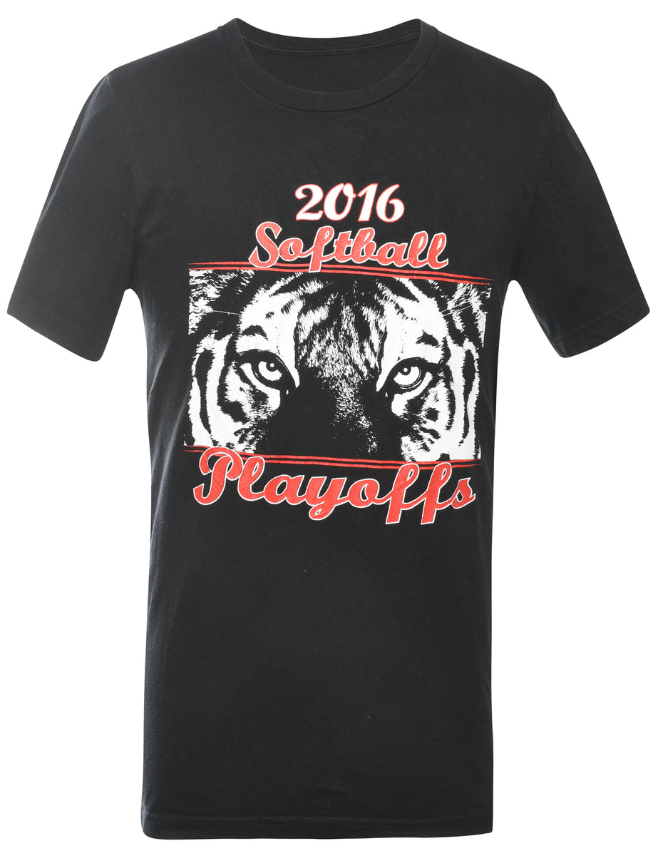 2000s softball printed t-shirt. Comes in black.