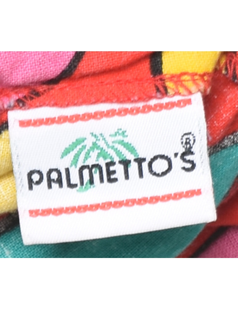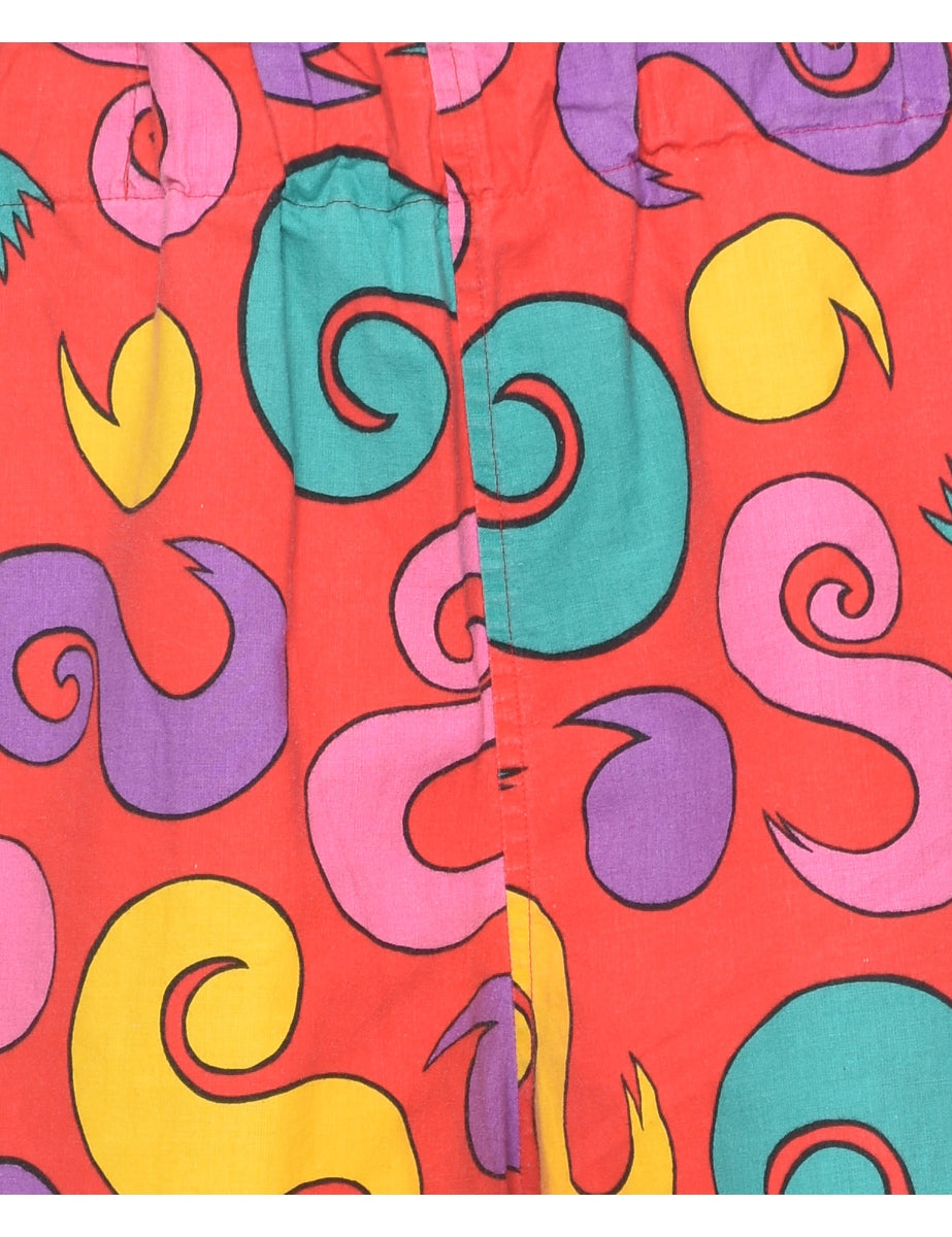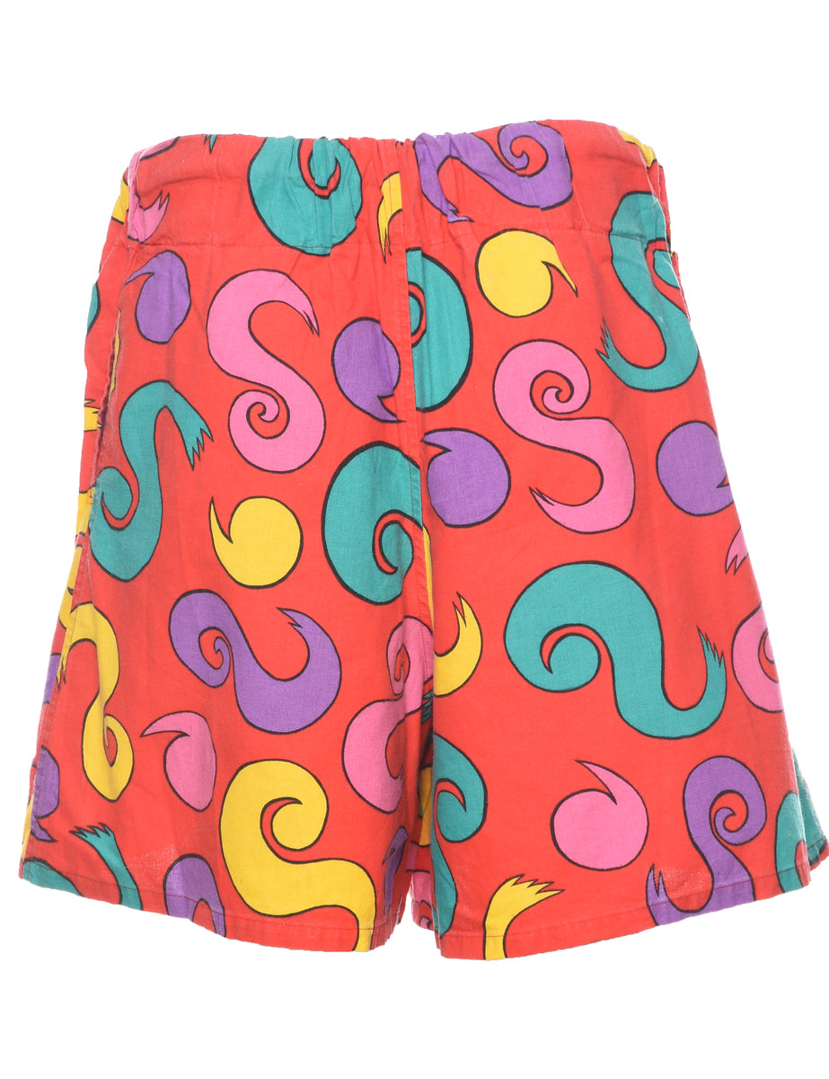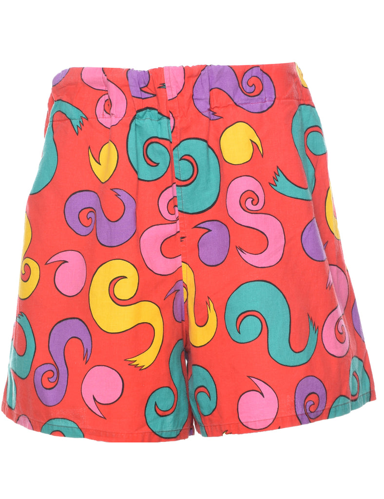 Shorts with abstract print. Comes in red with elastic waist and multiple pockets.