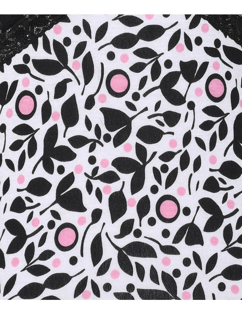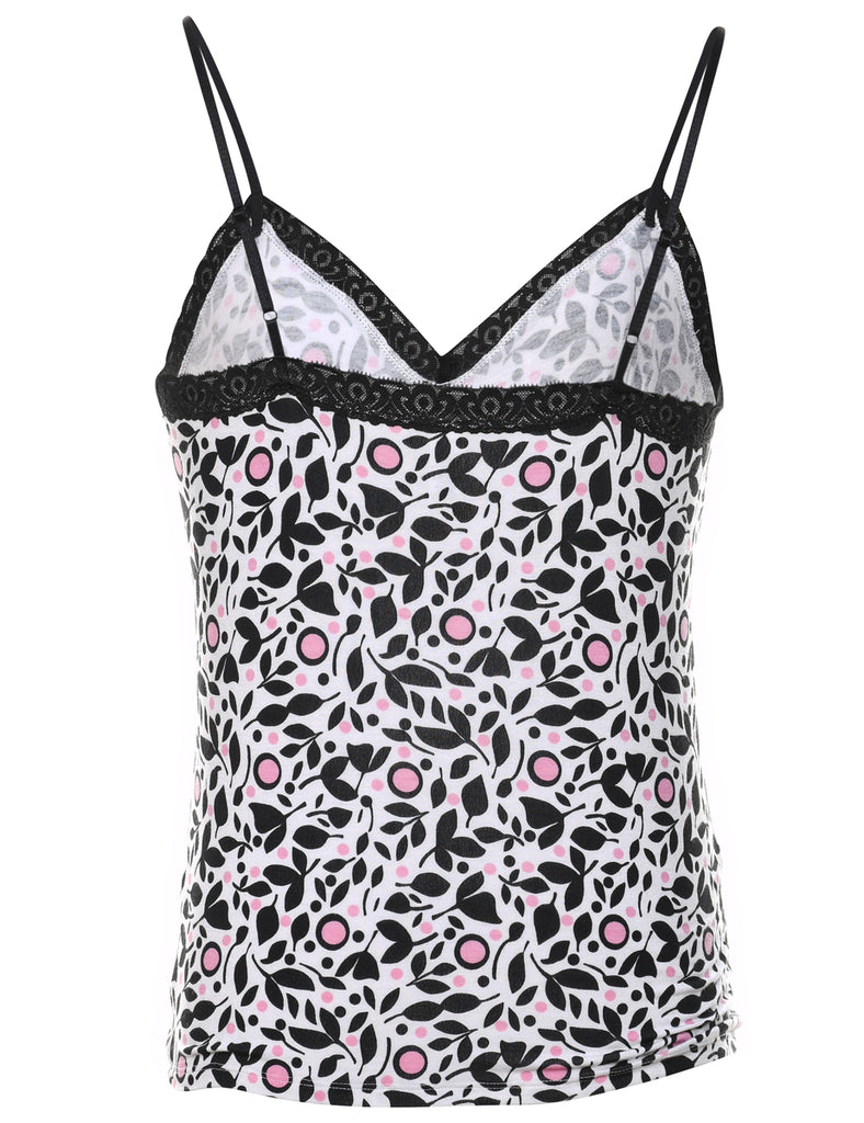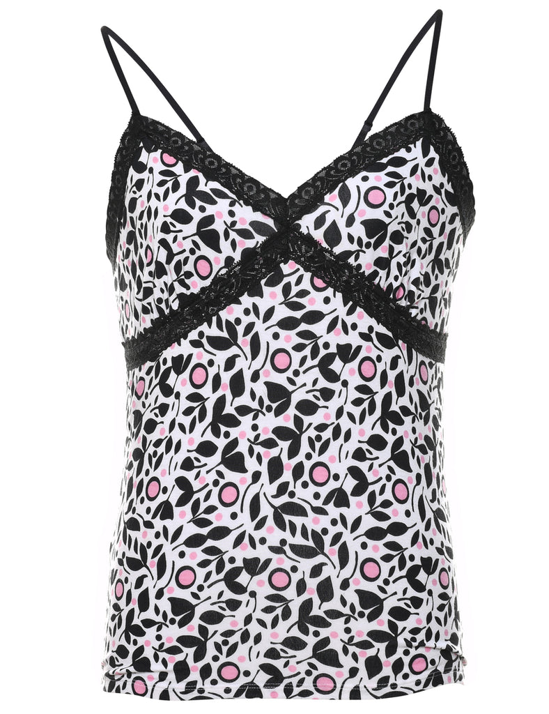 Black & pink floral patterned cami top complete with adjustable straps and lace trim.