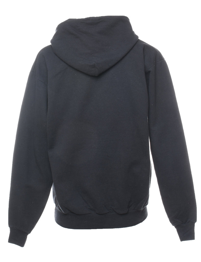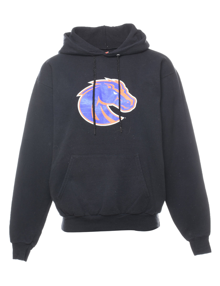 Printed hoodie. Comes in black, blue & orange complete with a pocket.
