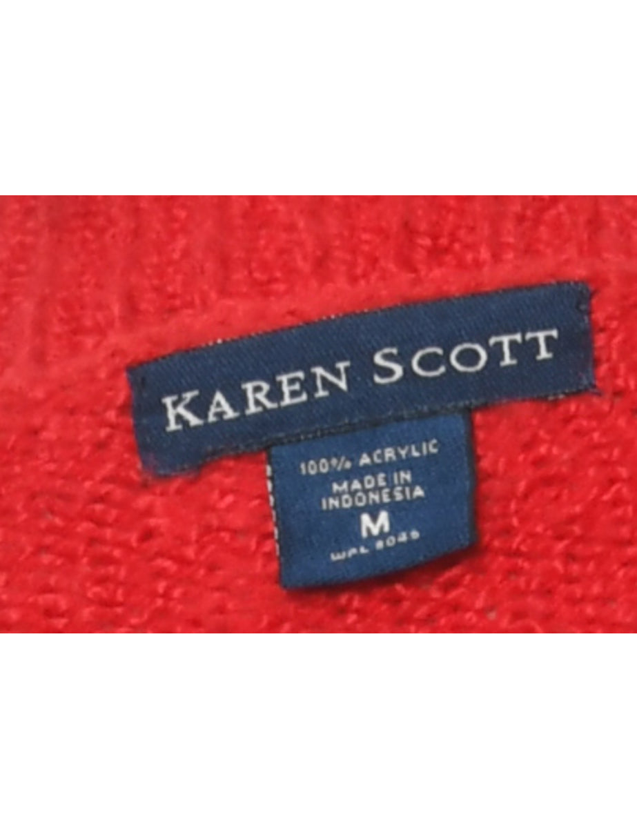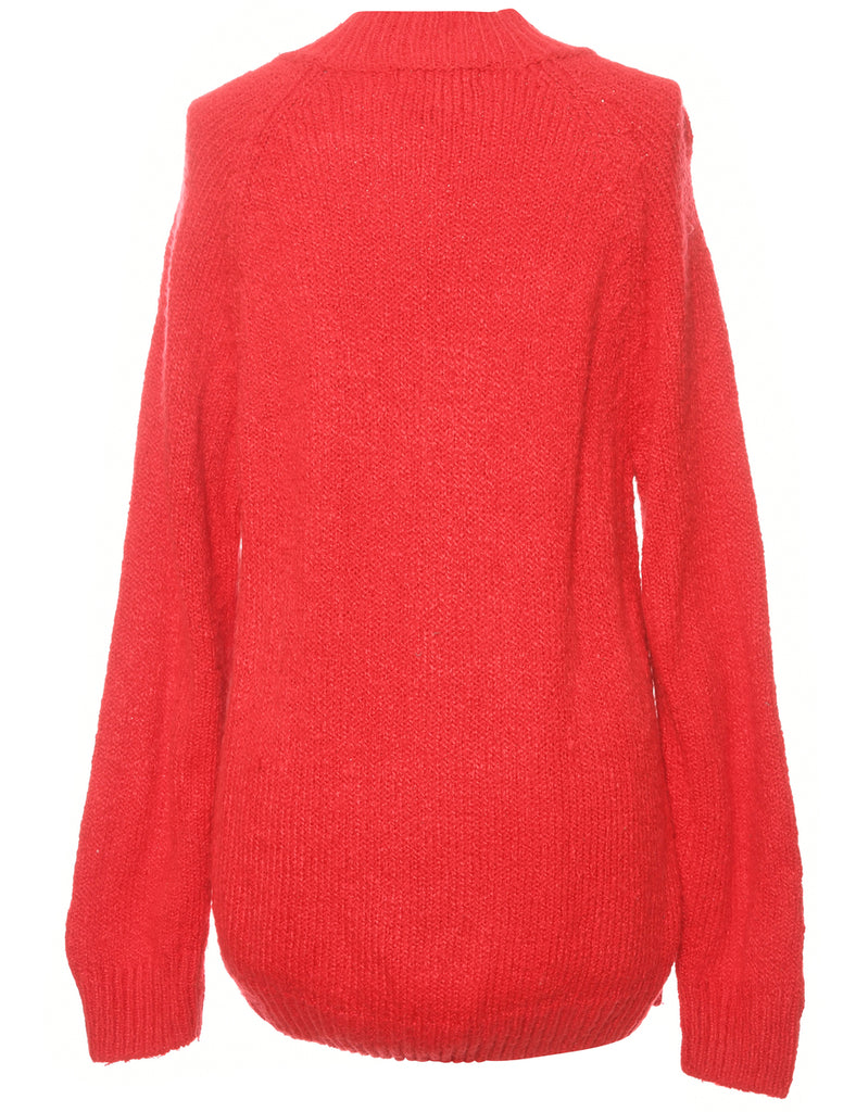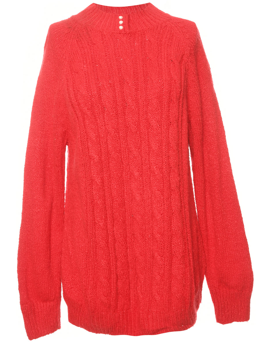 Cable knit jumper in red with a button front neck.