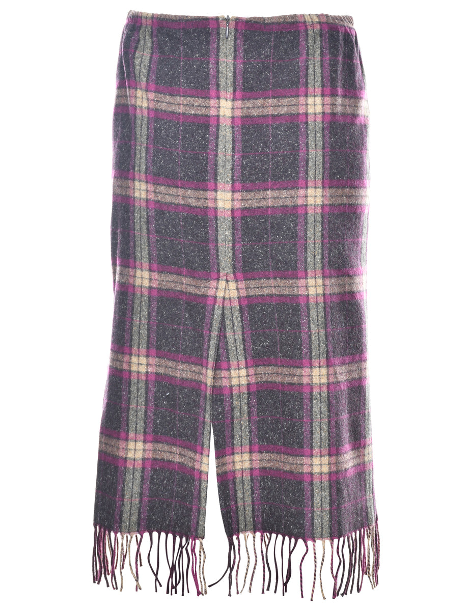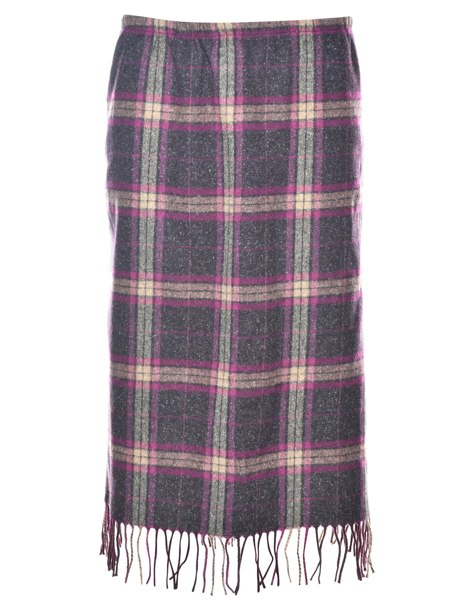 Checked knee length skirt. Comes in plum with full lining and fringing.