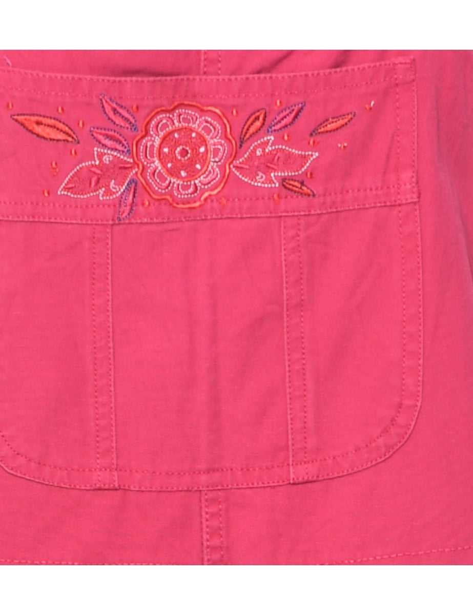 Straight leg cropped dungarees. Cherokee in pink with adjustable strap and multiple pockets.