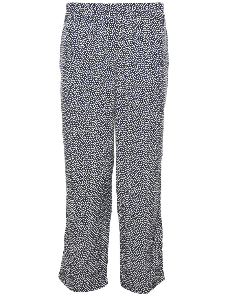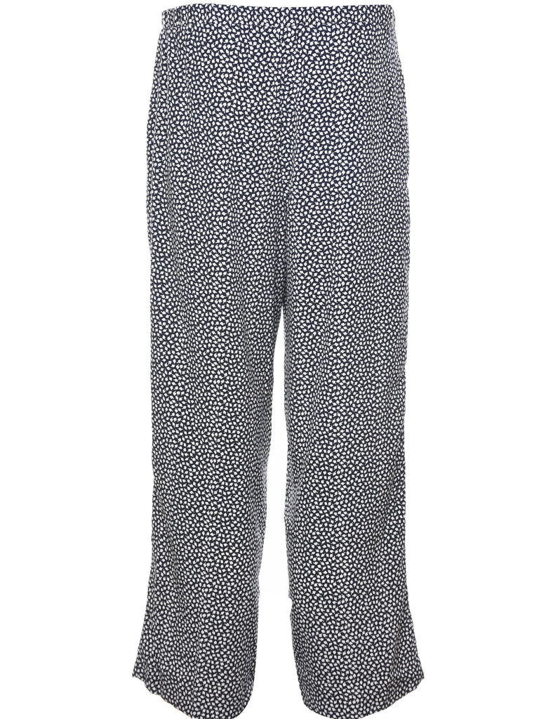 Ditsy floral printed trousers with monochrome comes in white & black with multiple pockets and an elasticized waist.