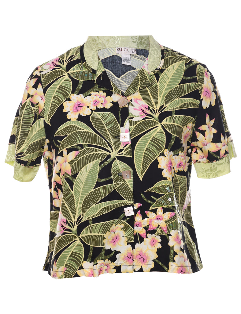 Embellished hawaiian shirt in multi-colour with sequins and decorative trim.