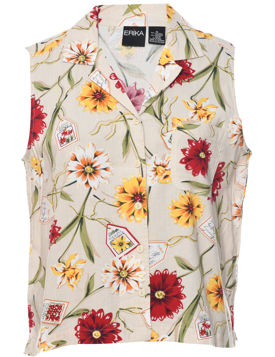 Erika floral hawaiian shirt comes in off white with a revere front and one pocket.
