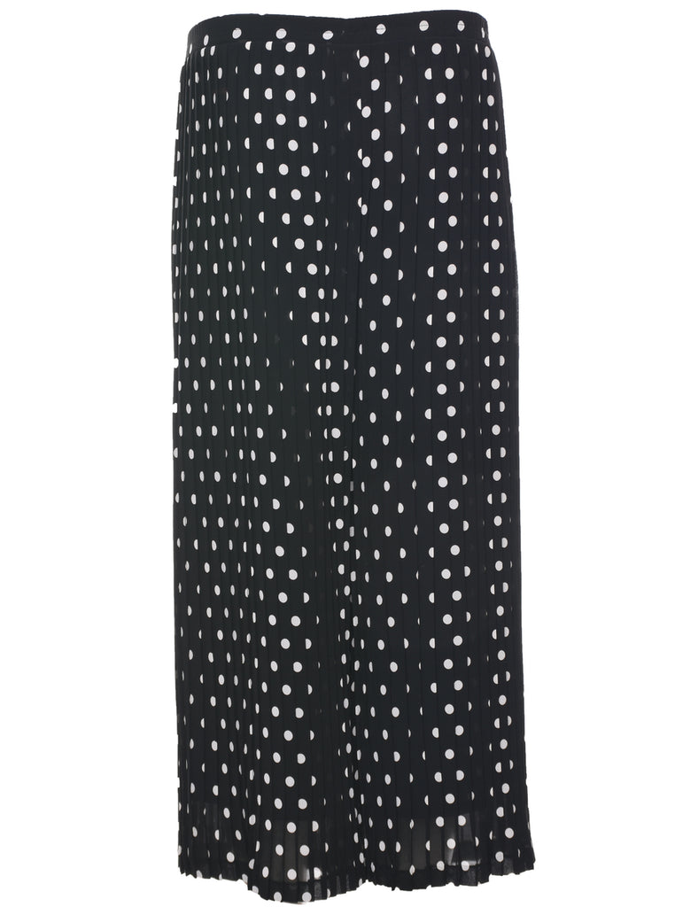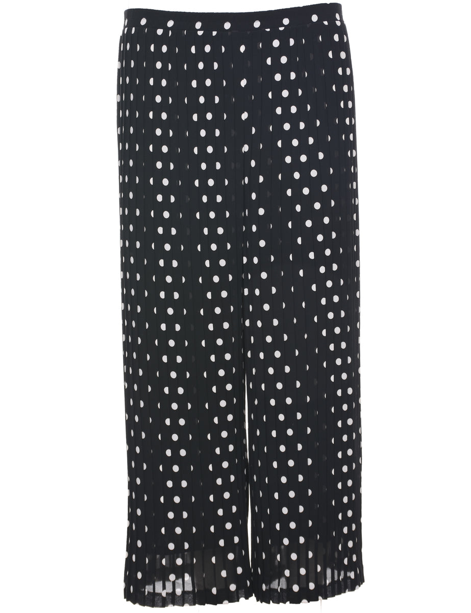 Flared leg printed trousers with polka dot comes in black with an elasticized waist.