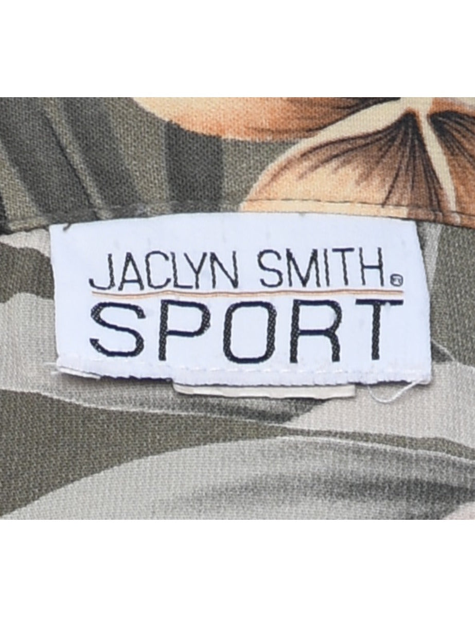 Floral hawaiian shirt with leafy print comes in green with a revere front and removable shoulder pads.