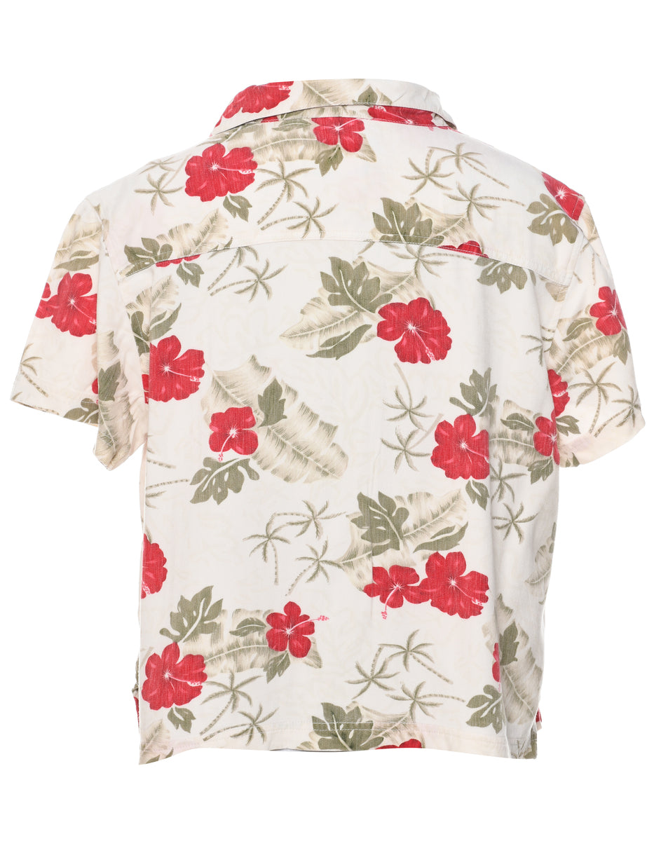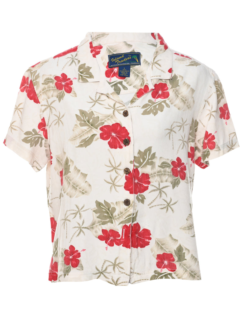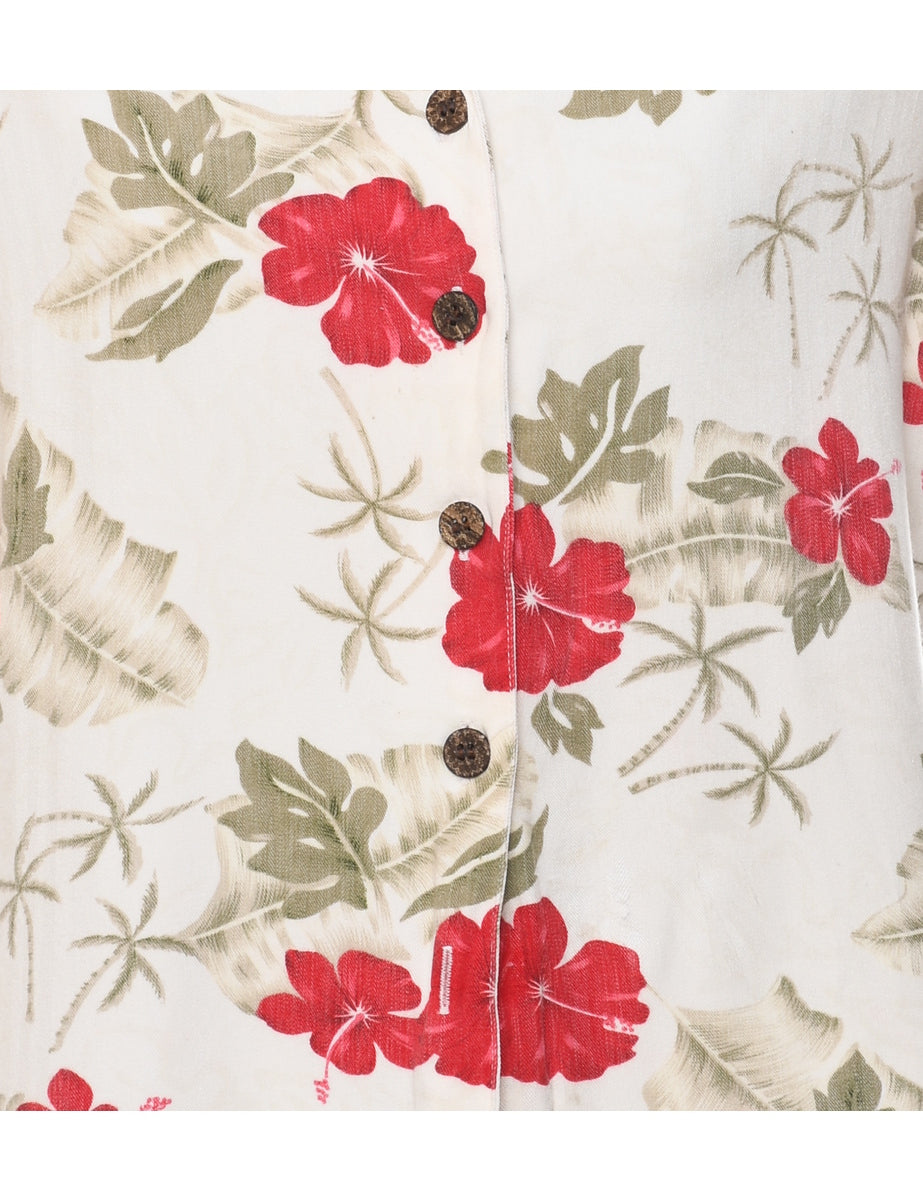 Floral hawaiian shirt with leafy print. Comes in off white with a revere front.