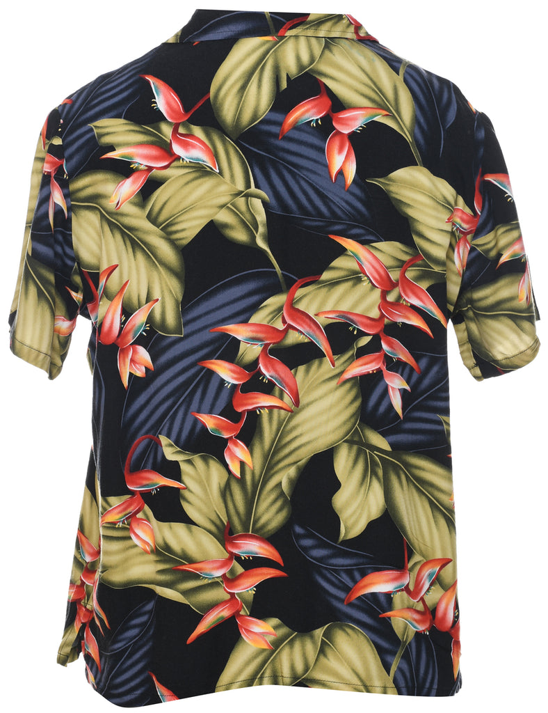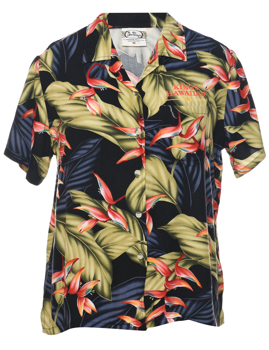 Floral hawaiian shirt with leafy print comes in multi-colour with a revere front and one pocket.