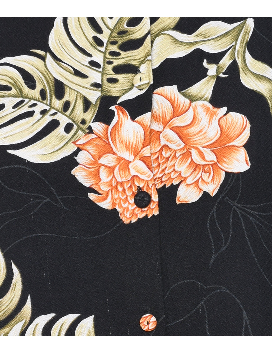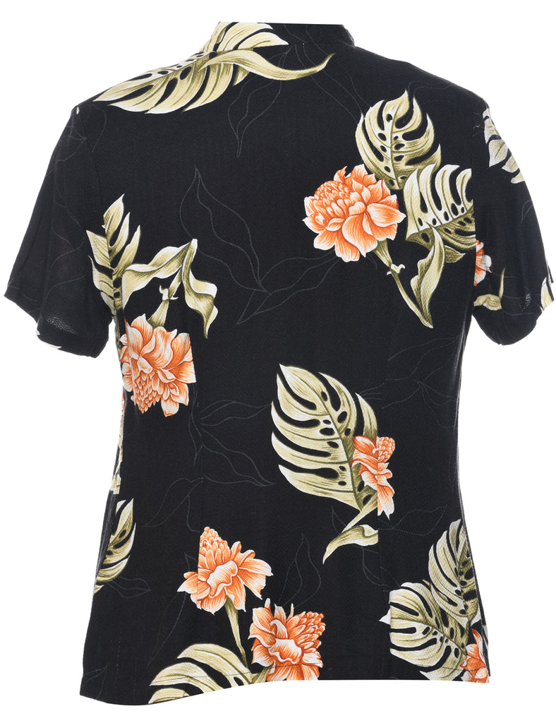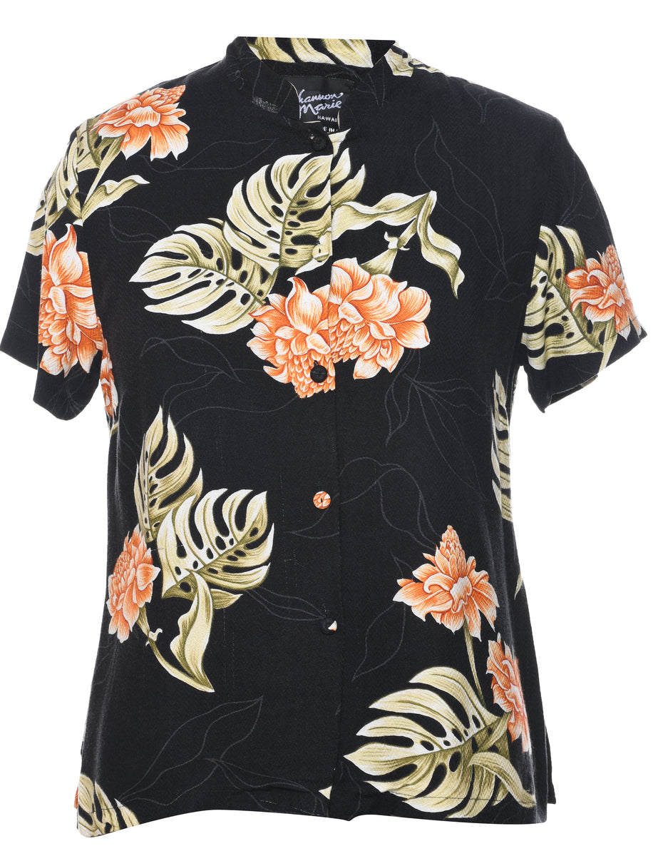 Floral hawaiian shirt with leafy print. Comes in black with removable shoulder pads.