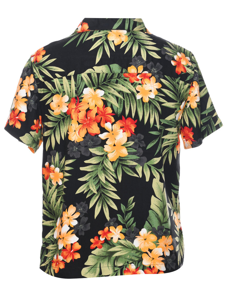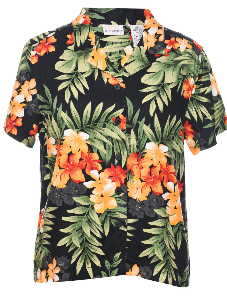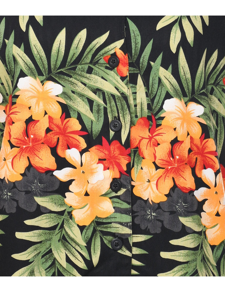 Floral hawaiian shirt with leafy print comes in multi-colour with a revere front.