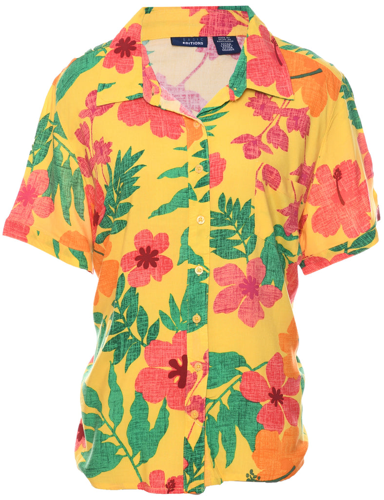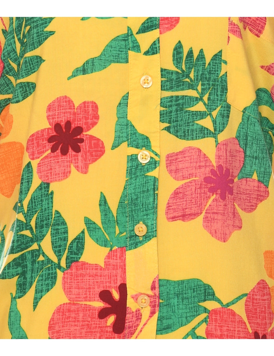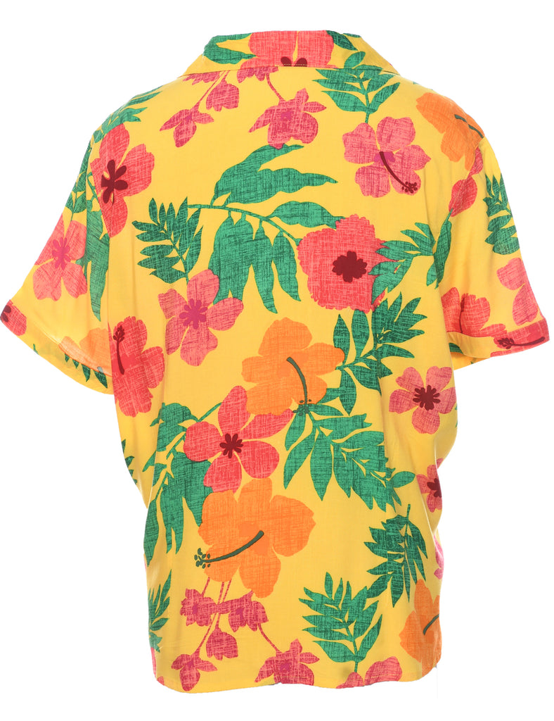 Floral hawaiian shirt with leafy print. Comes in yellow with a classic collar.