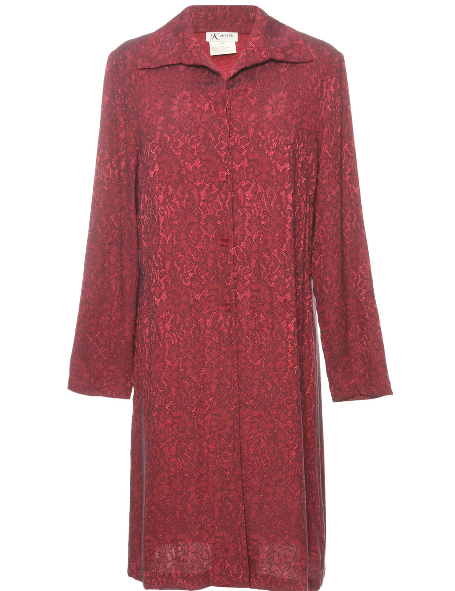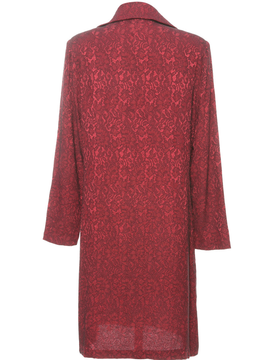 Maroon long sleeve floral lace dress. Complete with classic collar and built-in shoulder pads.