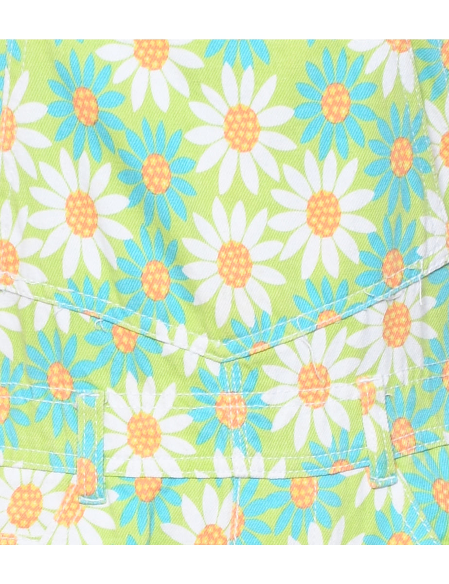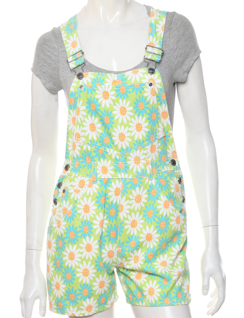 Floral Light Blue & Green Cropped Dungarees - W29 L4