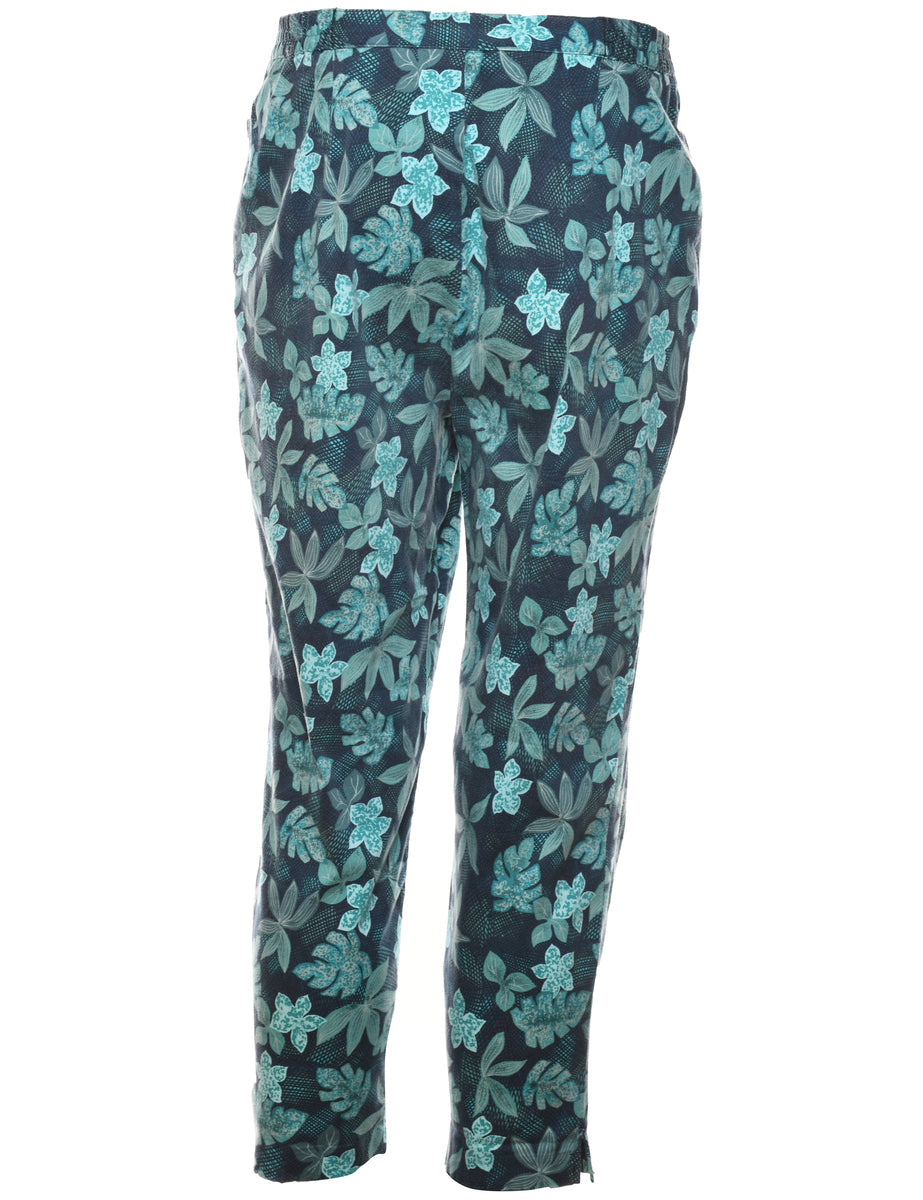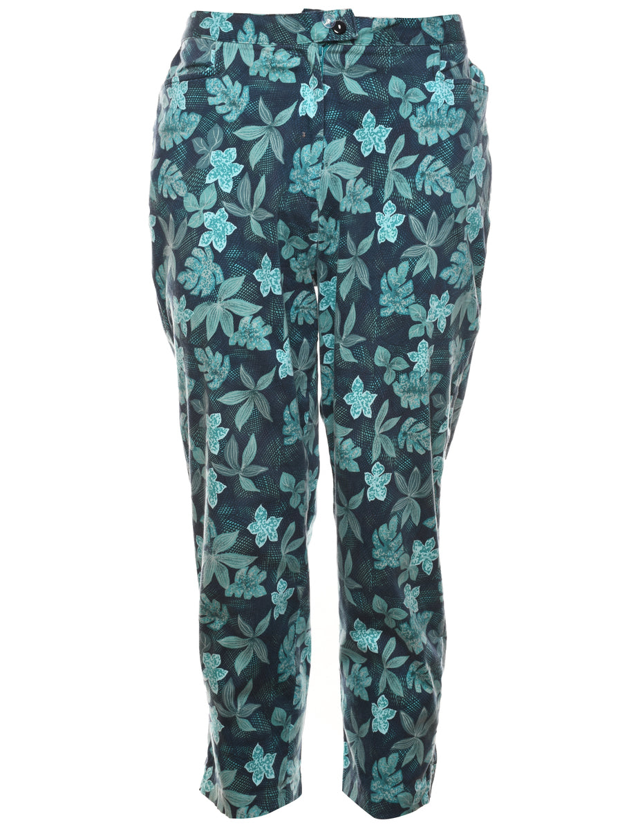 Floral Print Blue Casual Trousers - W34 L26