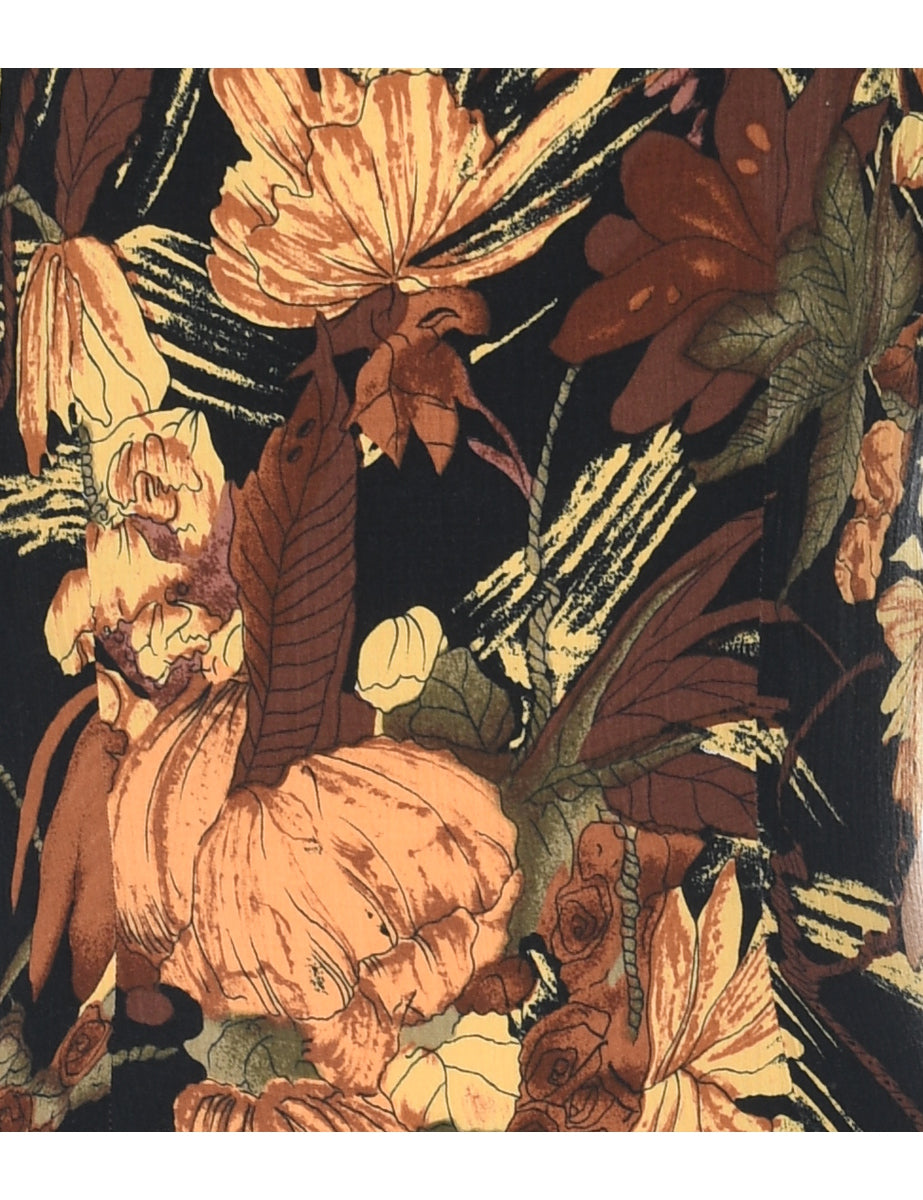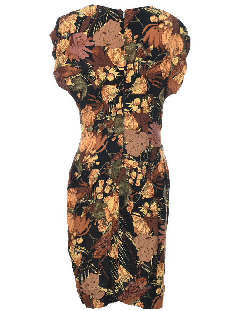 Floral print dress comes in multi-colour with removable shoulder pads and a drop waist.