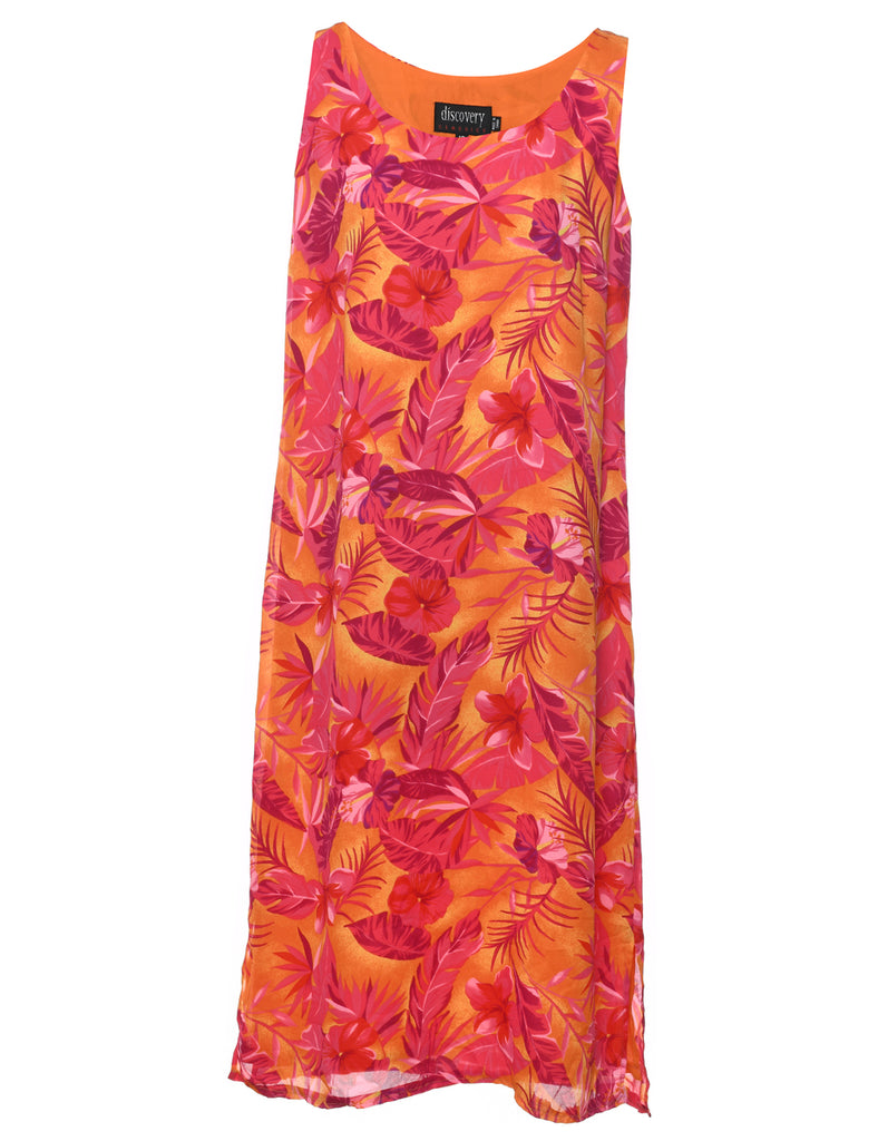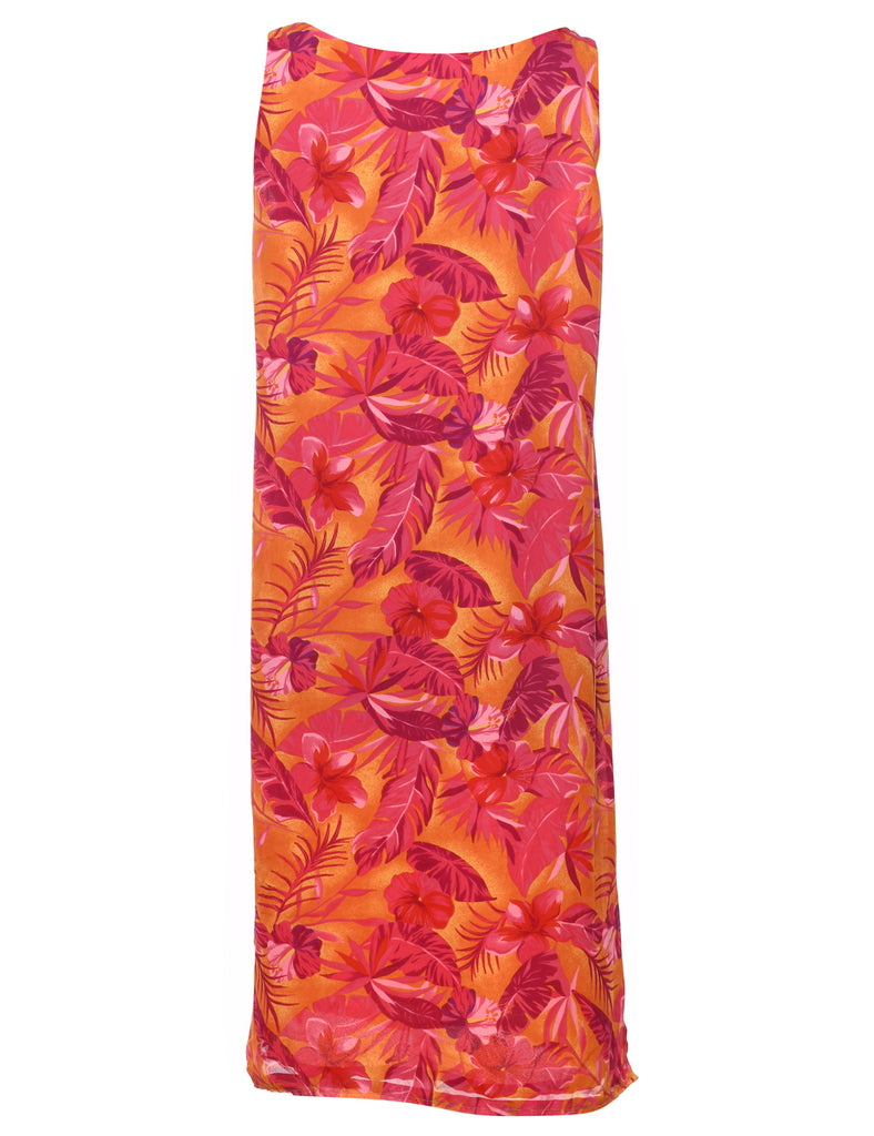 Floral print sleeveless dress. Comes in orange & pink with full lining.