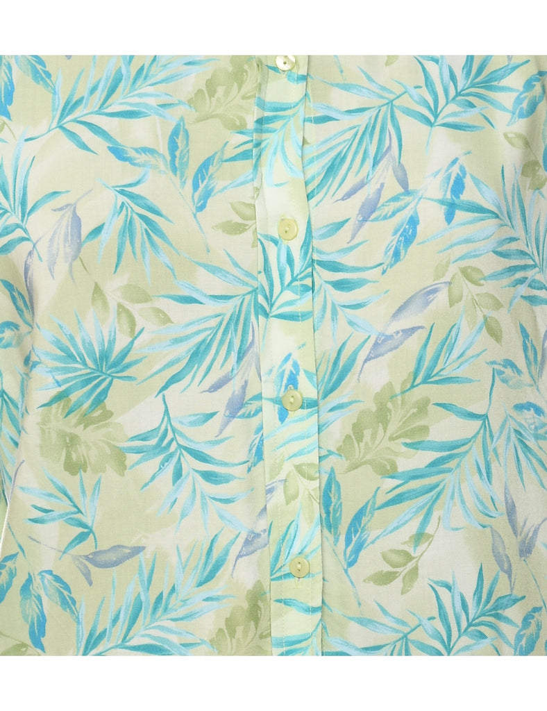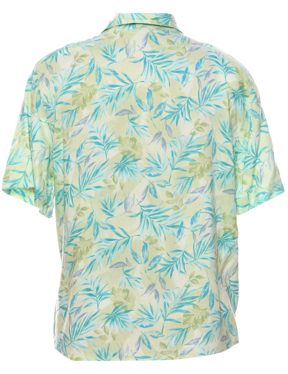 Foliage hawaiian shirt comes in light green with a classic collar and removable shoulder pads.