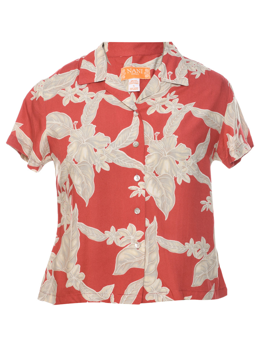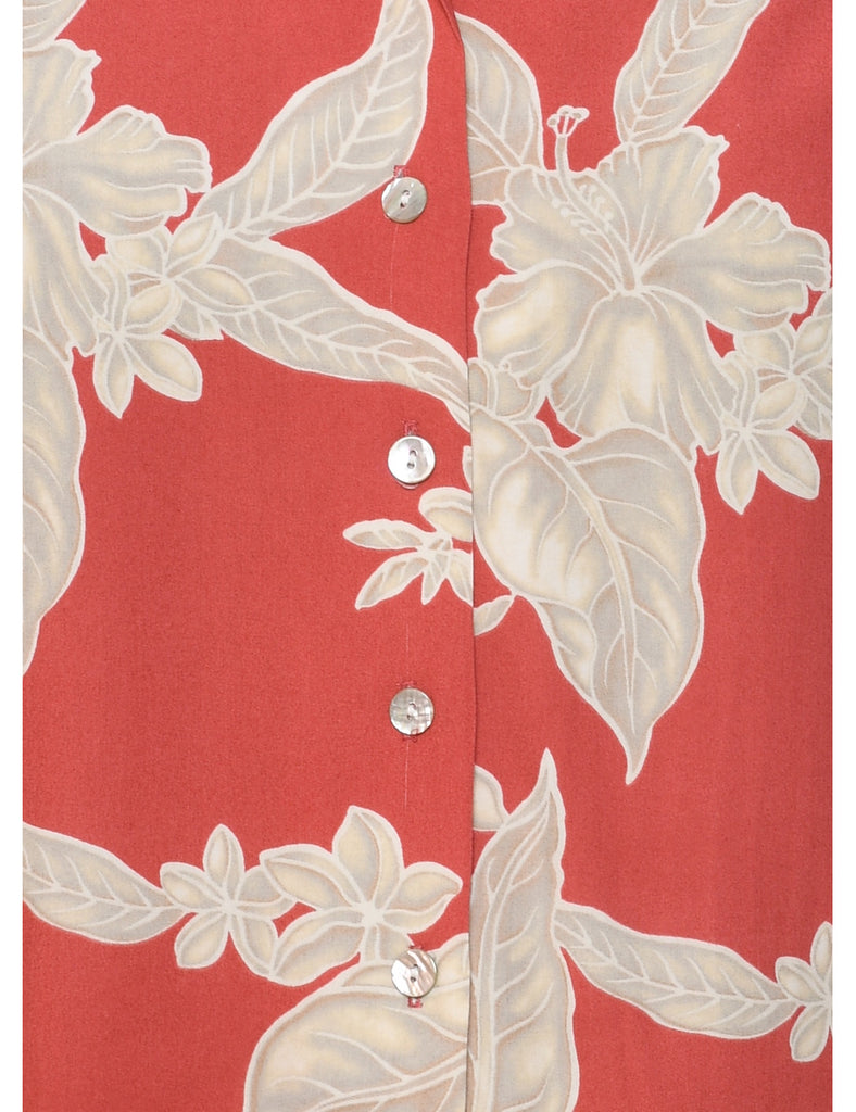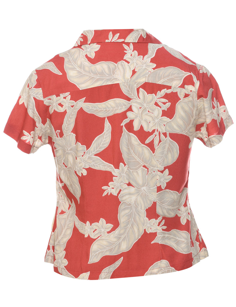 Foliage hawaiian shirt. Comes in coral with a revere front.