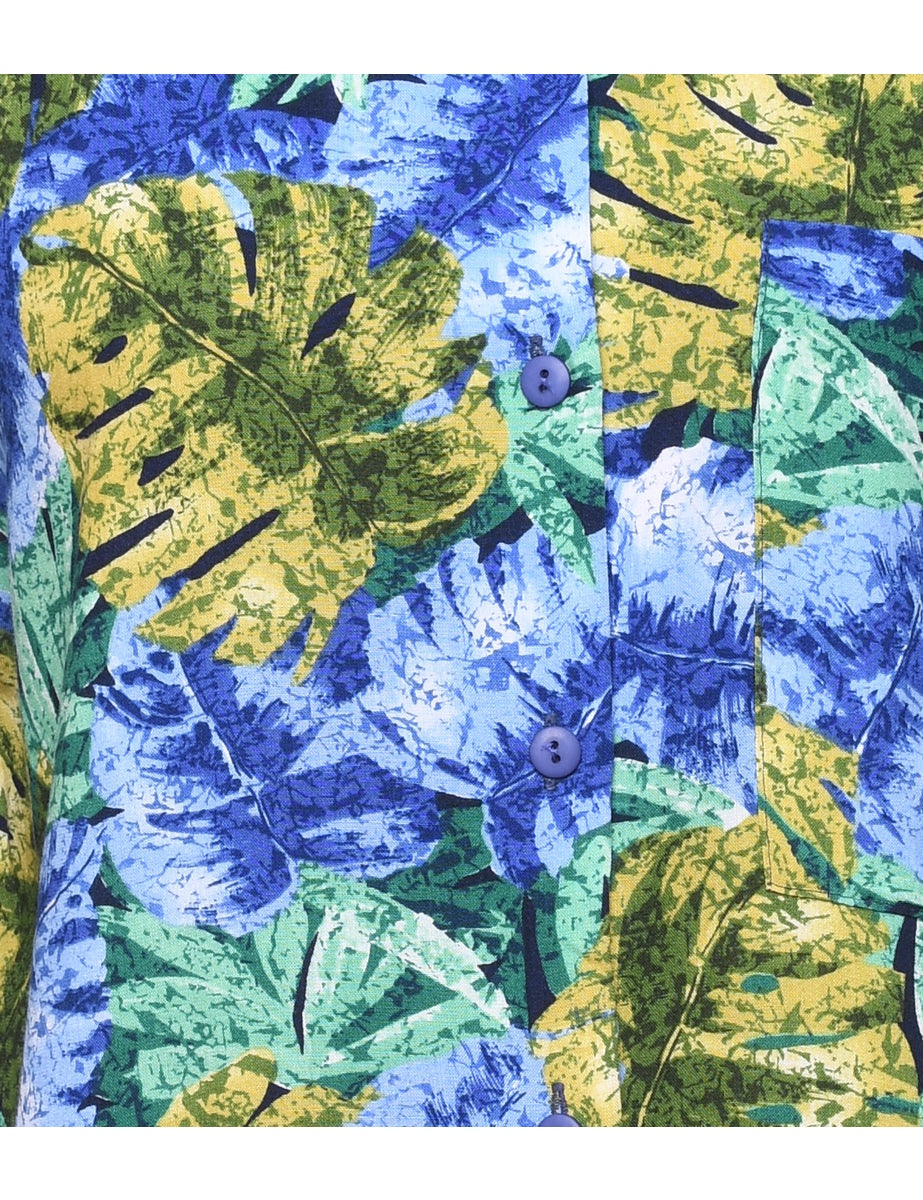 Foliage Print Hawaiian Blouse - L