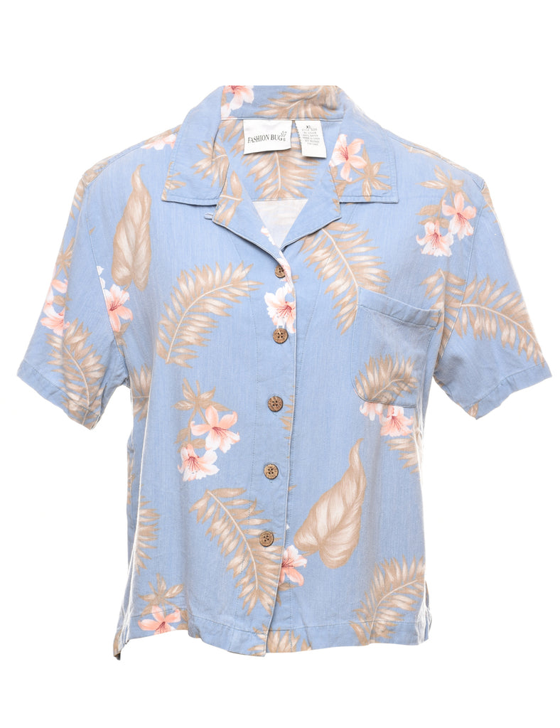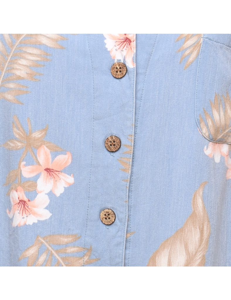 Foliage Print Light Blue Hawaiian Shirt - XL