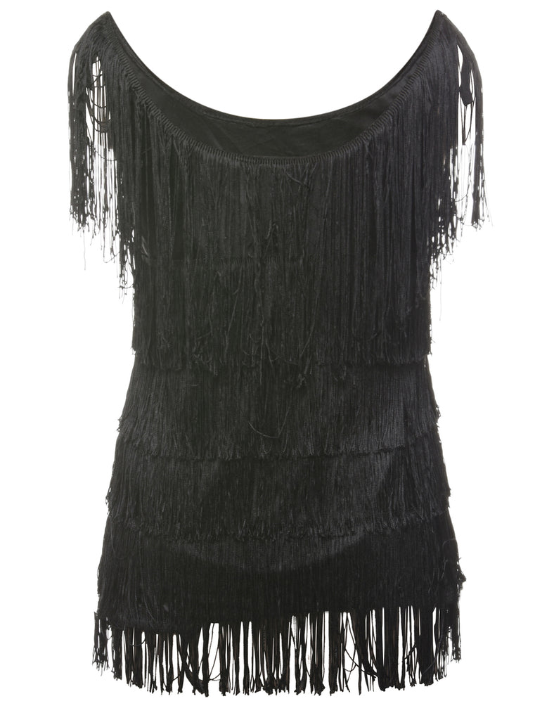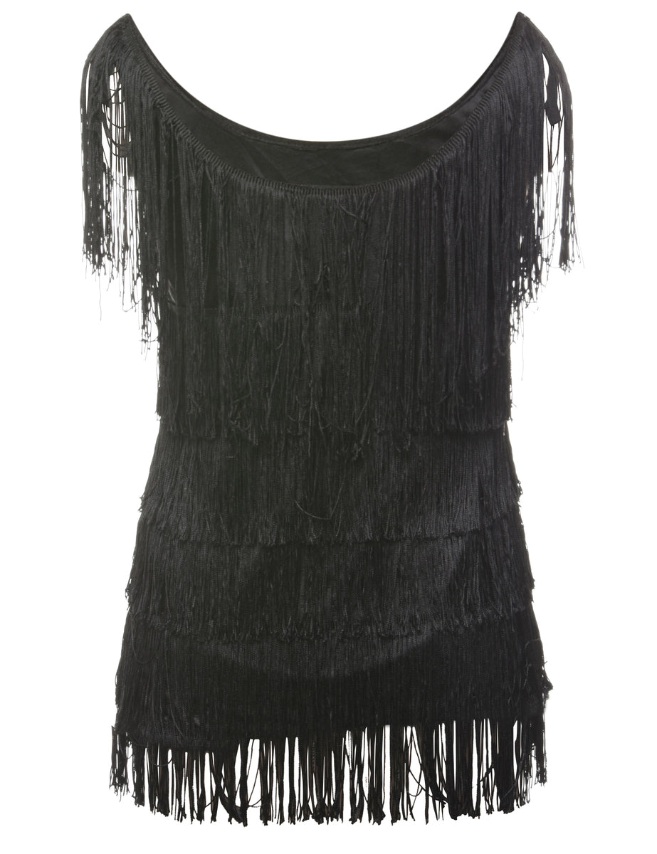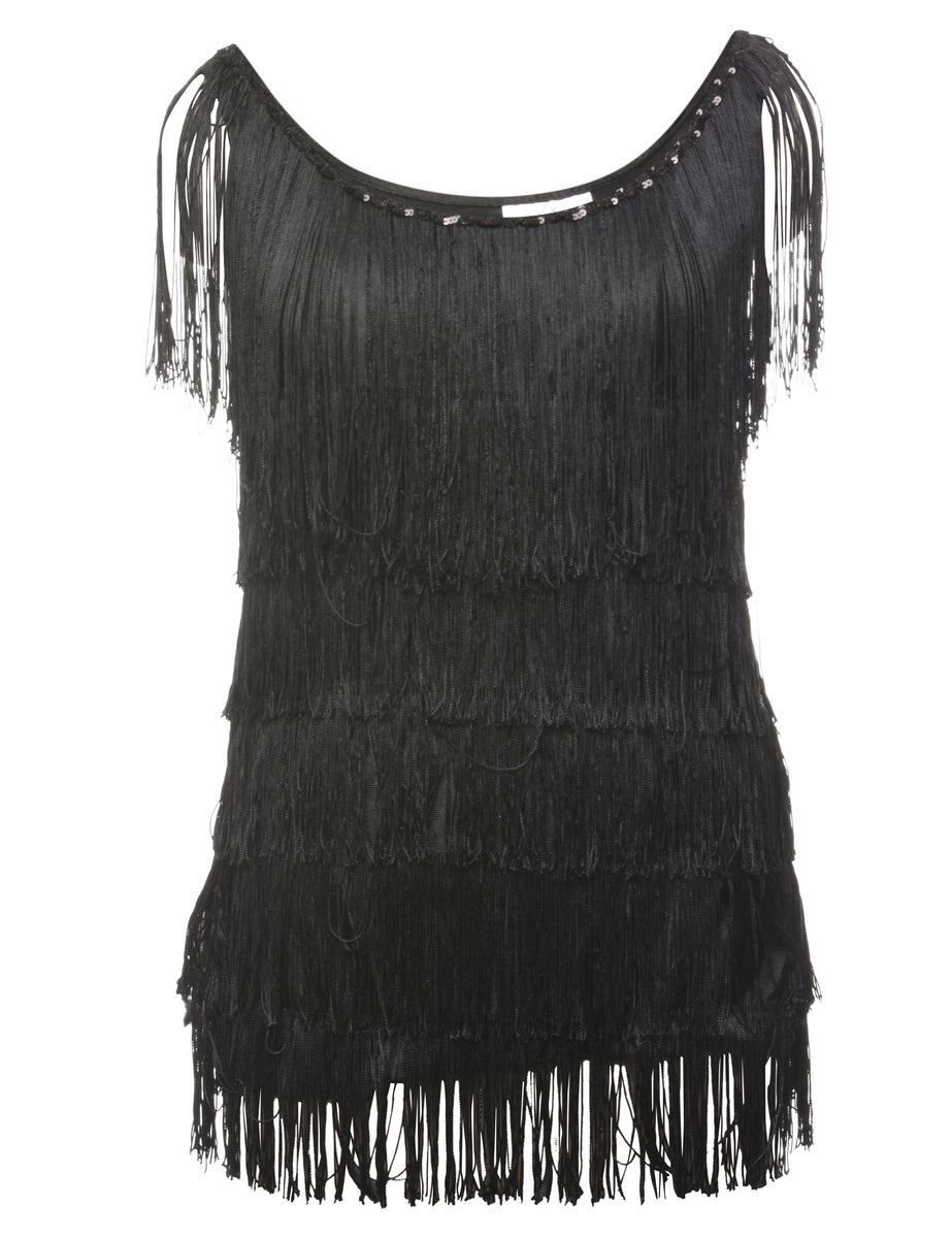 Fringing Black Evening Top - S