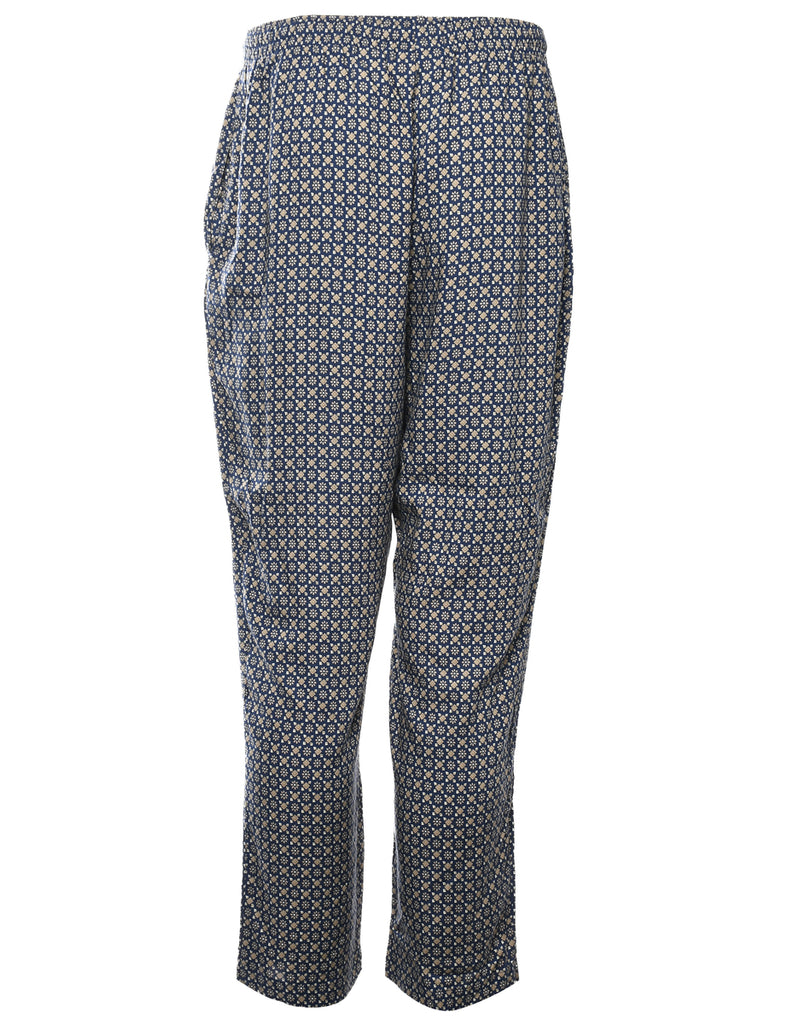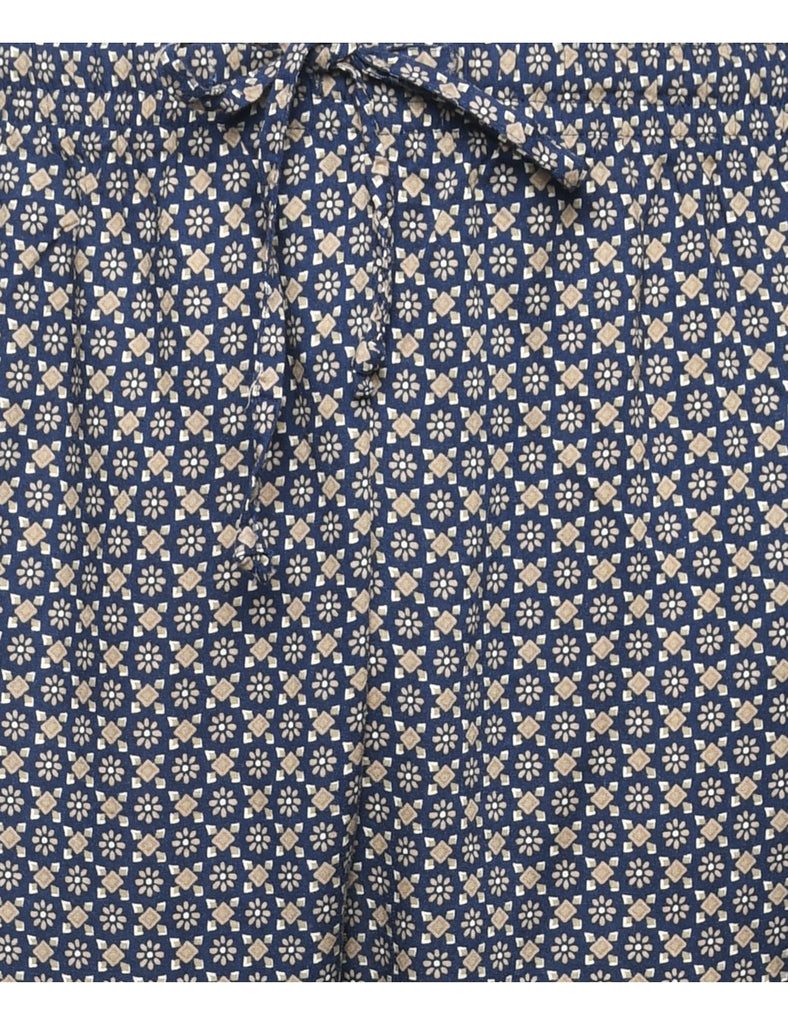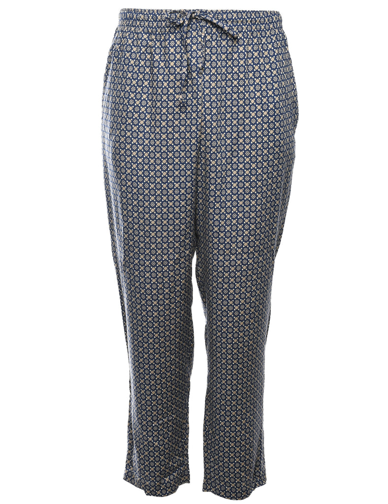 Geometric pattern harem pants. Comes in navy with two pockets and a drawstring waist.