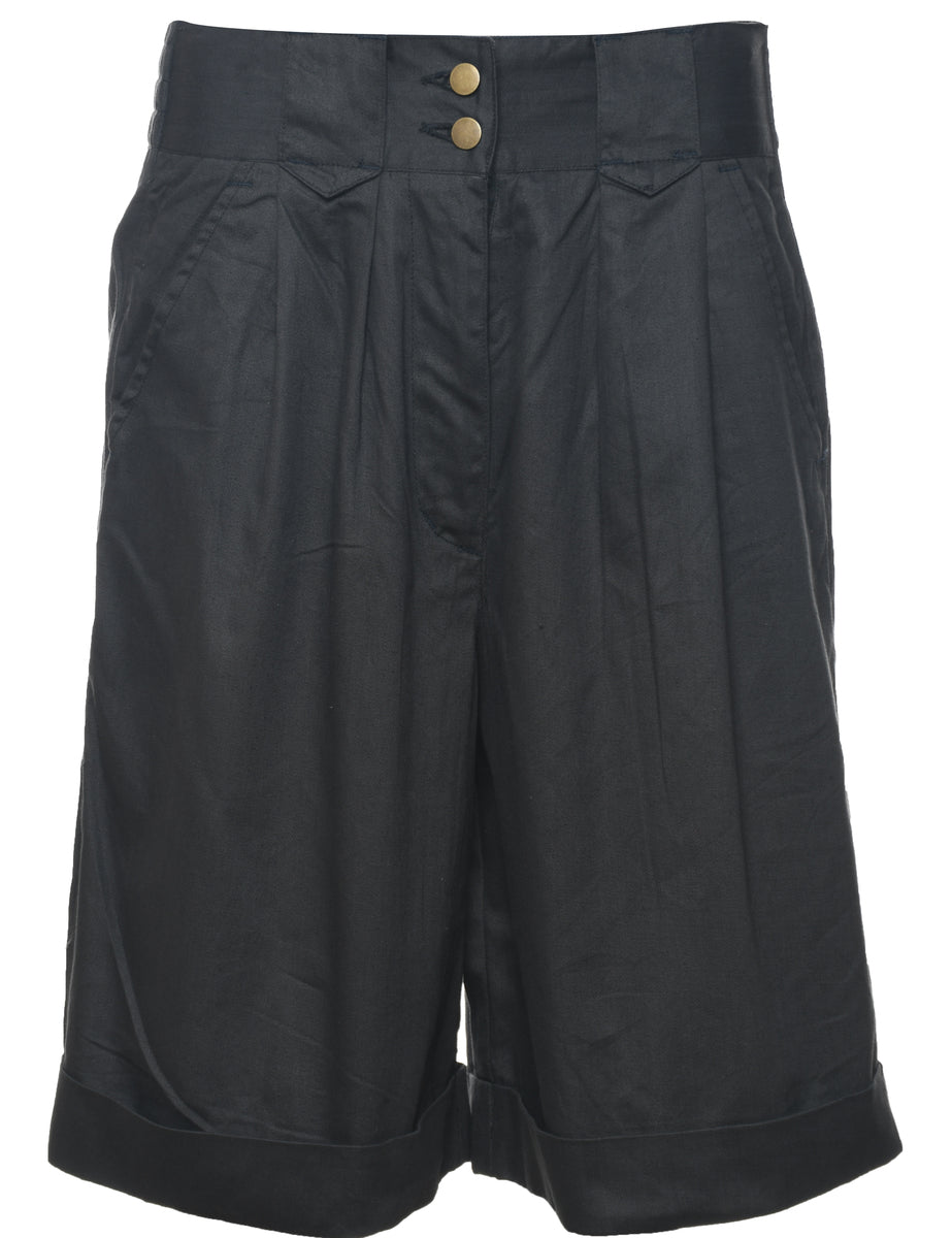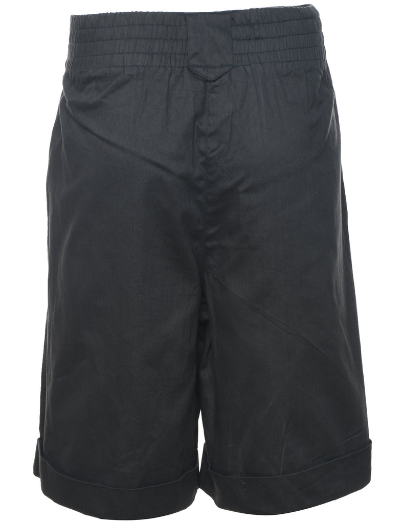 Knee length plain shorts in dark grey with an elasticized back and pleating.