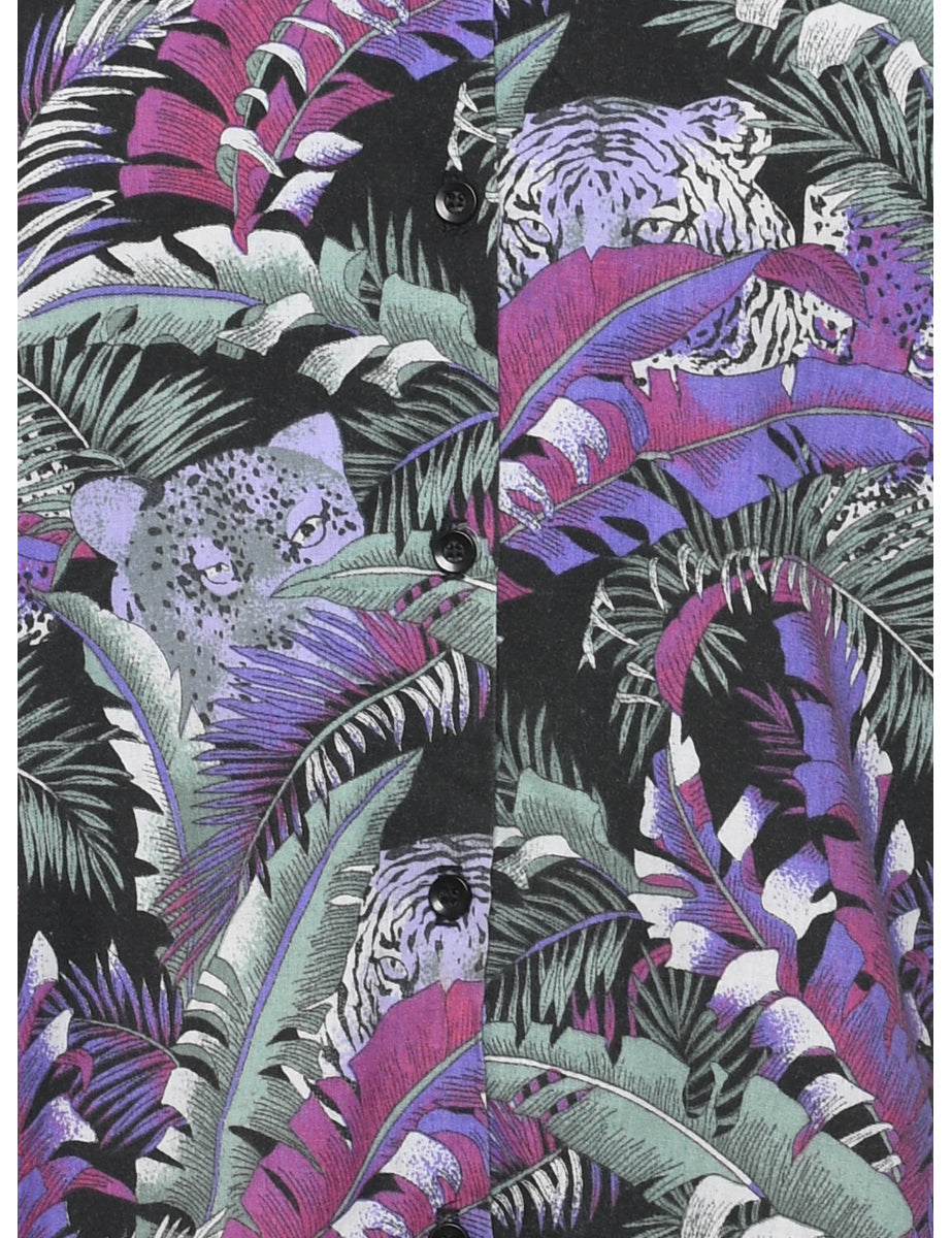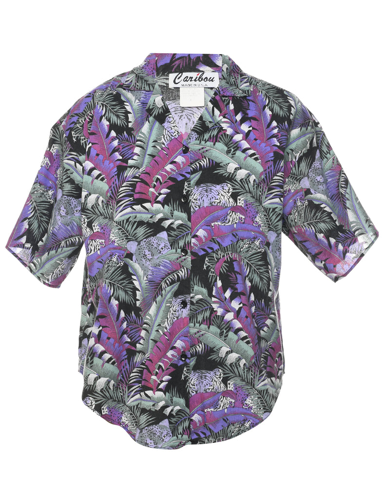 Leafy Print Hawaiian Shirt - M
