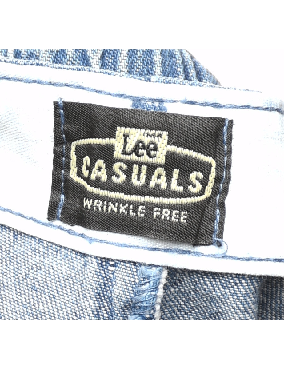 Lee classic denim shorts in medium wash with belt loops and multiple pockets.