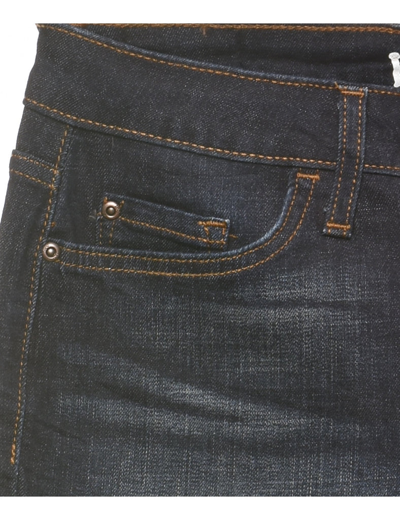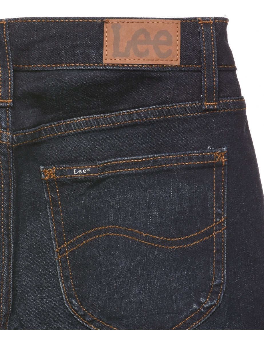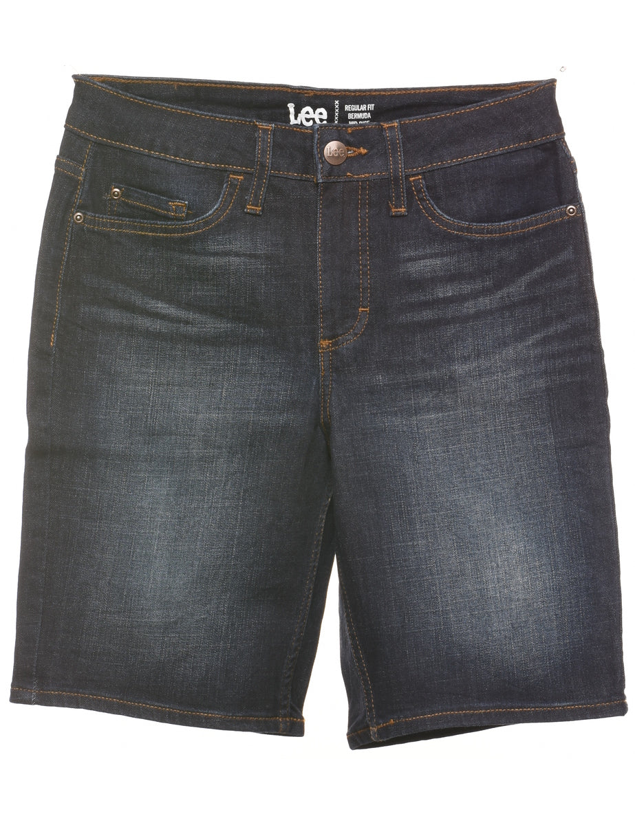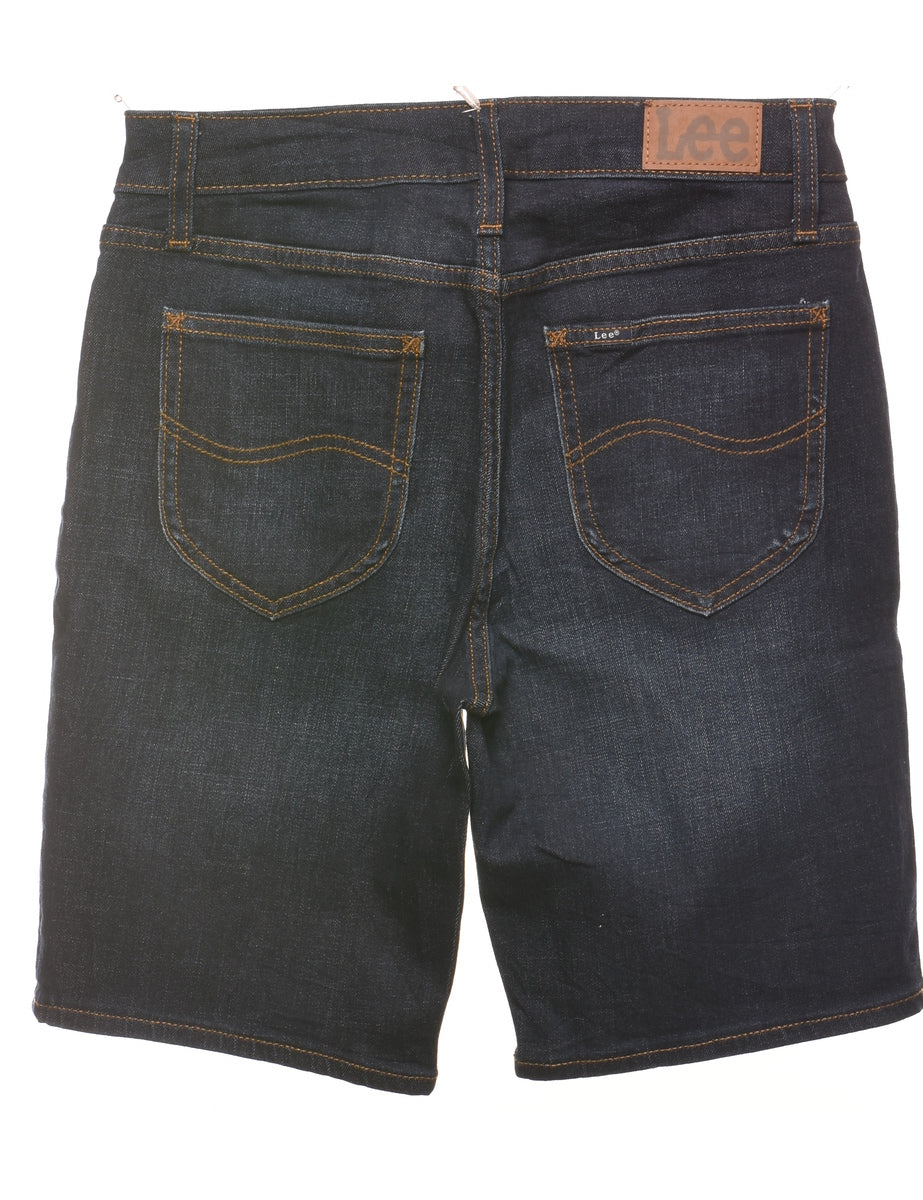 Lee denim shorts in dark wash with belt loops and multiple pockets.