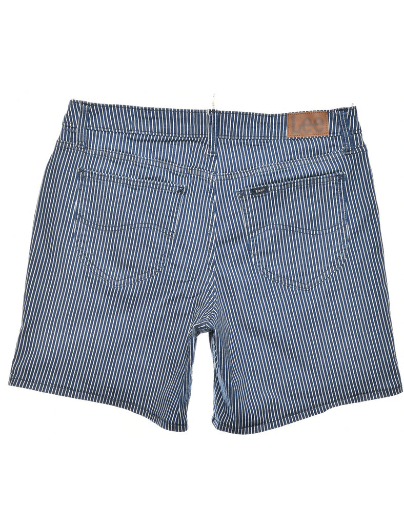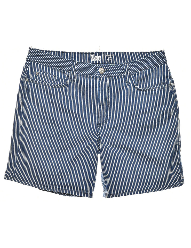 Lee pinstriped denim shorts in indigo with belt loops and multiple pockets.