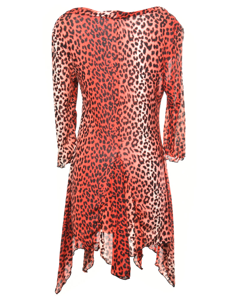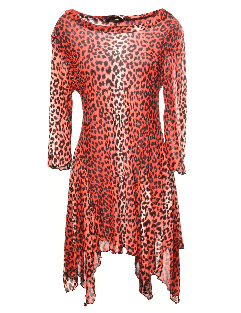 Leopard print mini dress. Comes in red with an asymetric hem.