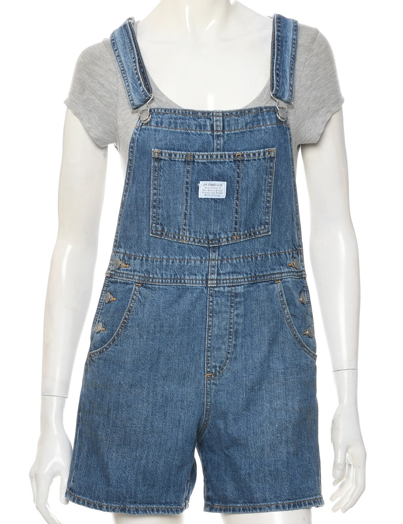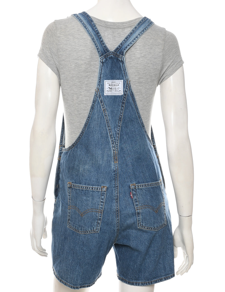 Levi's boyfriend fit cropped dungarees in medium wash with adjustable strap and multiple pockets.