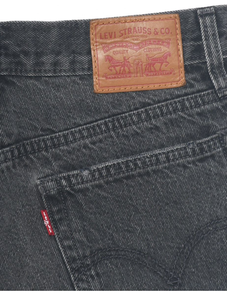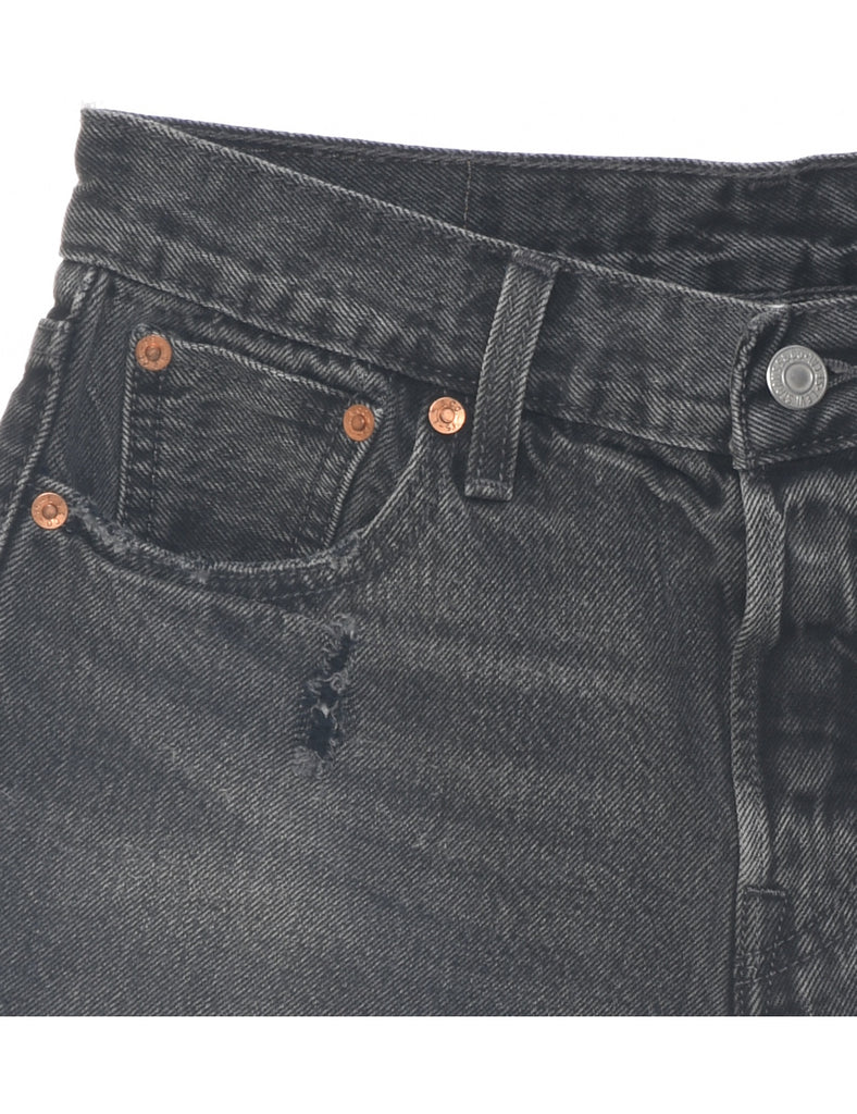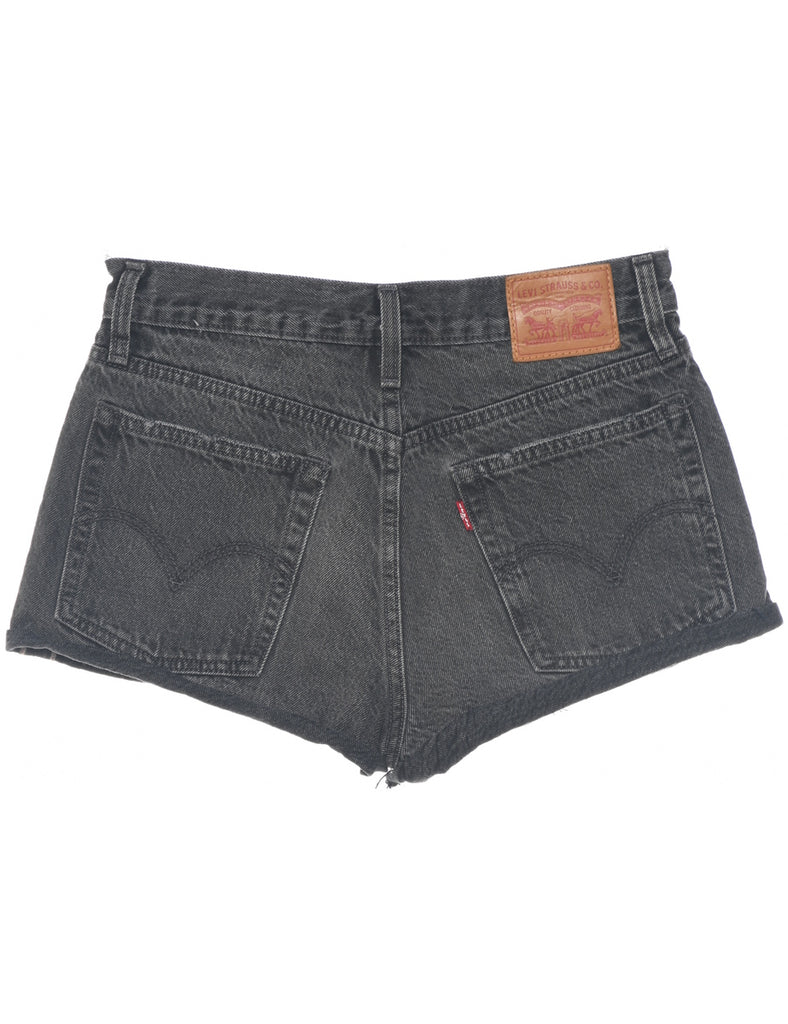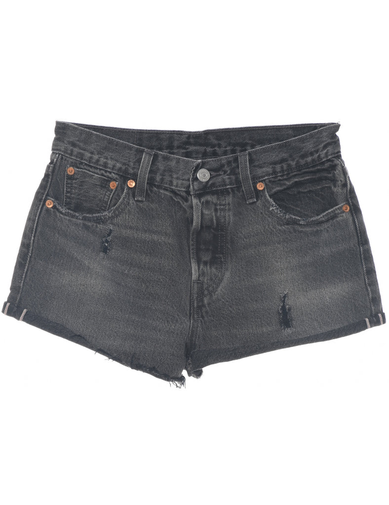 Levi's distressed denim shorts in dark grey with a rolled hem and multiple pockets.