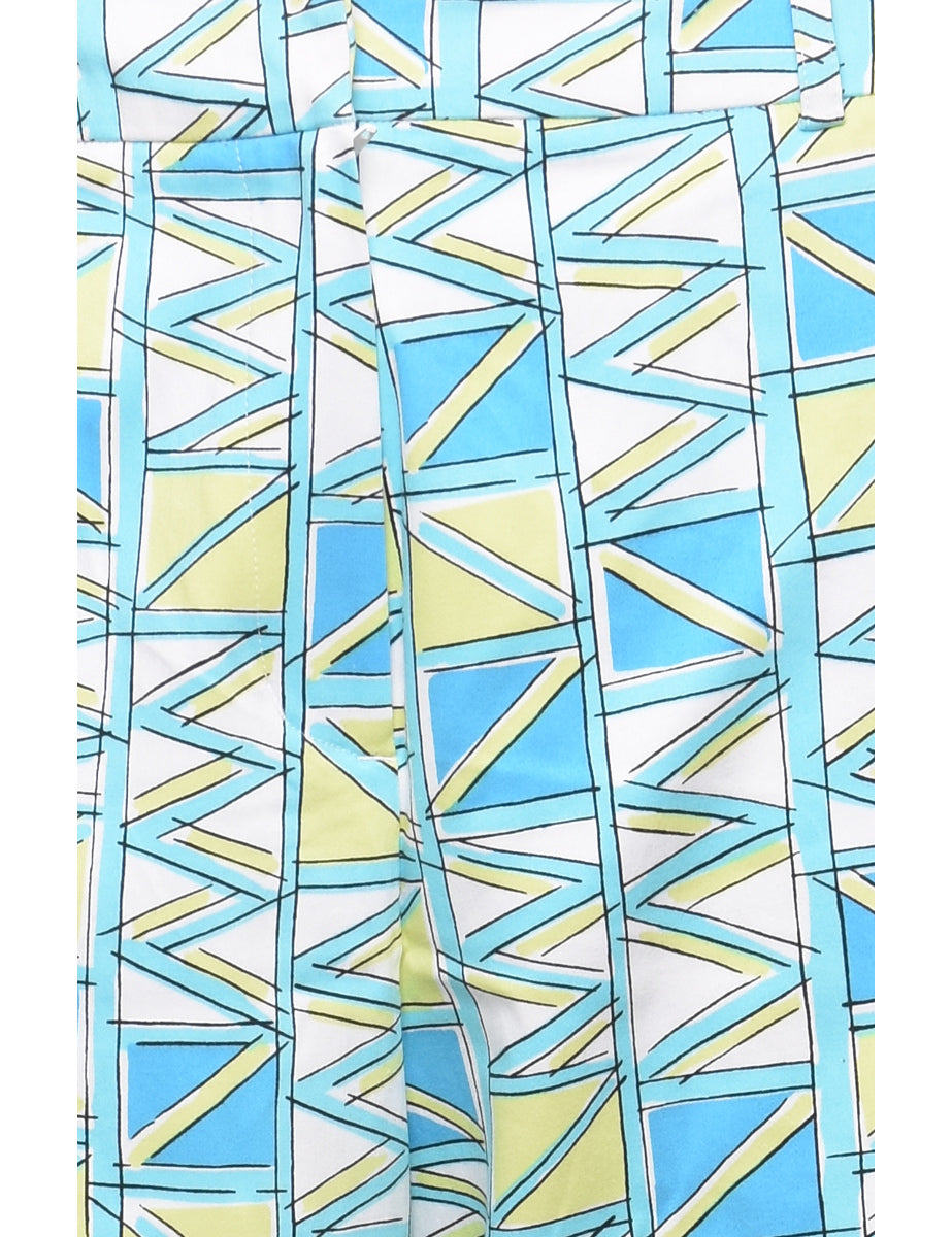 Light blue & yellow 1980s trousers complete with belt loops and multiple pockets.