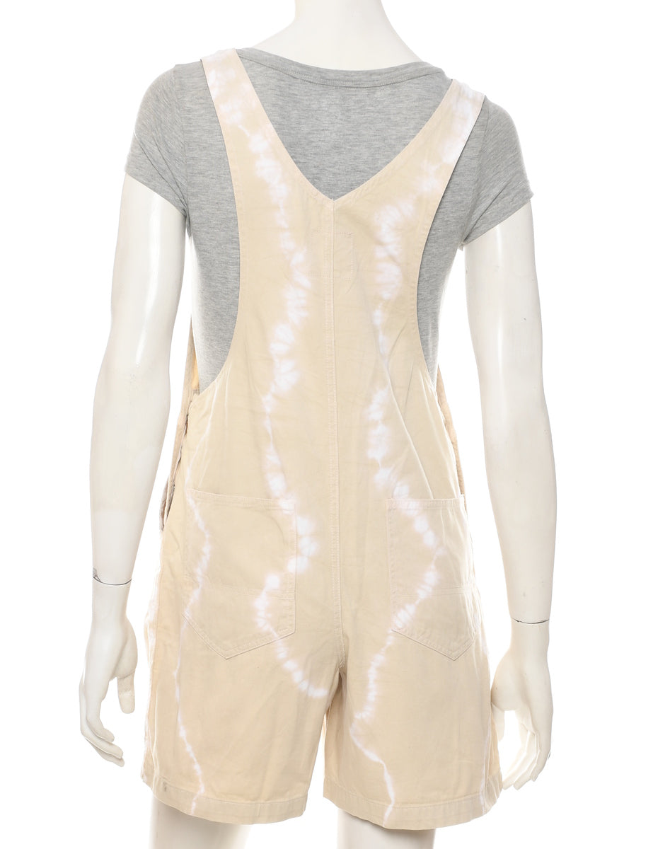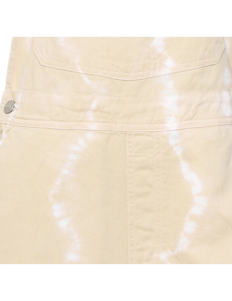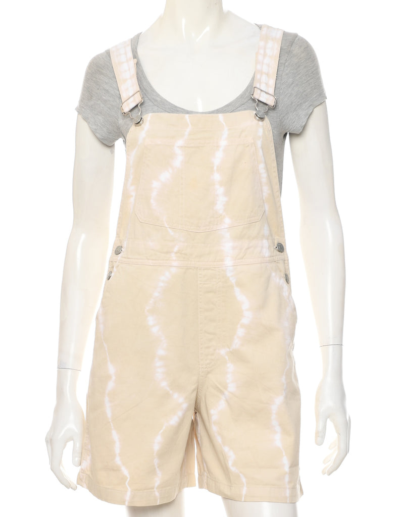 Boyfriend fit cropped dungarees in light brown with adjustable strap and multiple pockets.