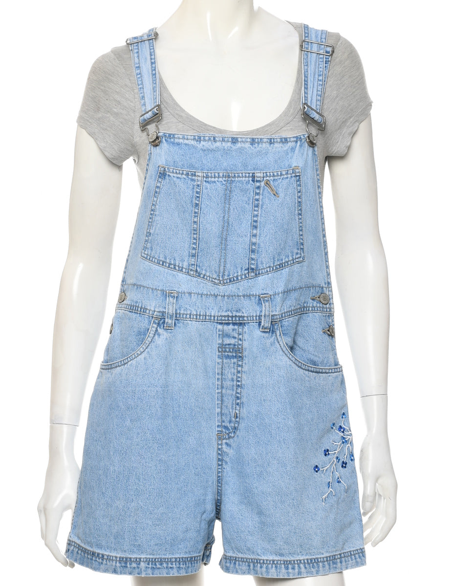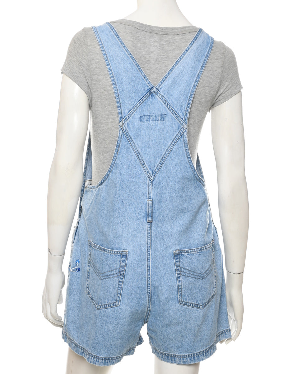 Boyfriend fit cropped dungarees. Comes in light wash with adjustable strap and multiple pockets.