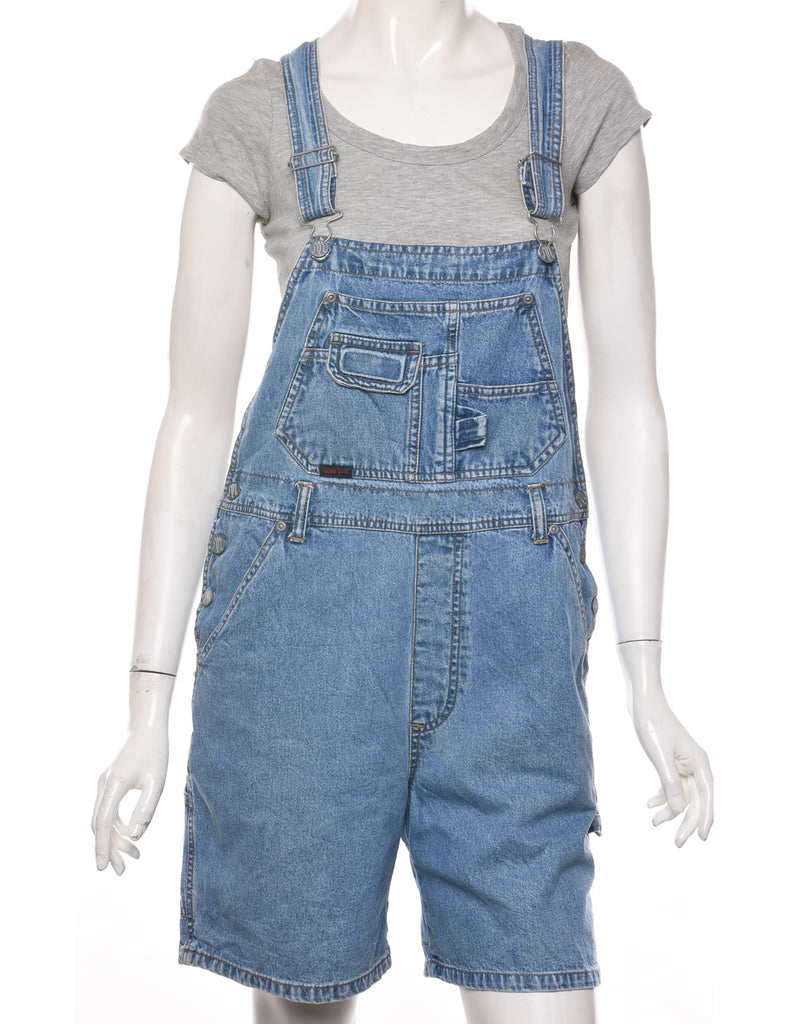 Straight leg cropped dungarees. Comes in light wash with adjustable strap and multiple pockets.