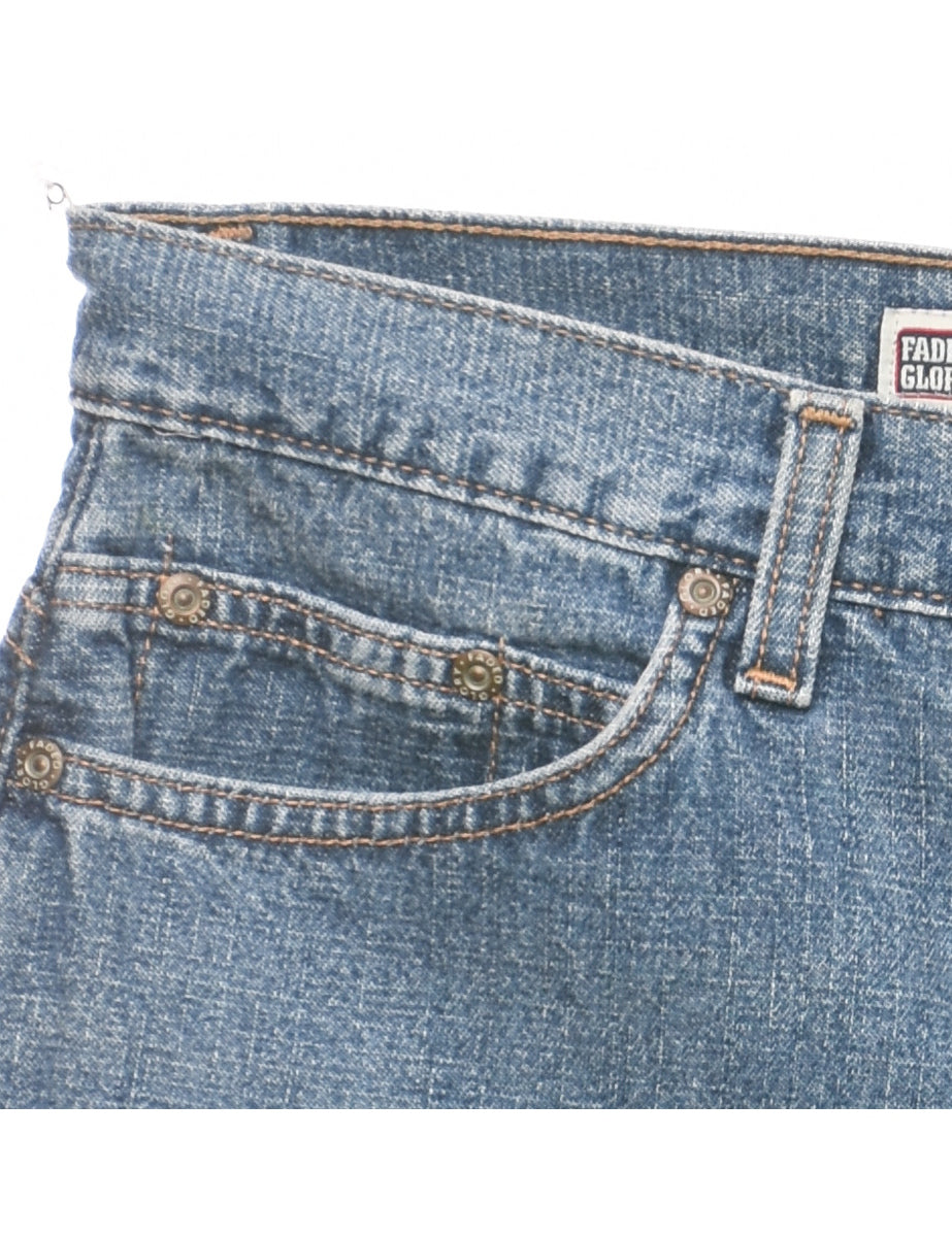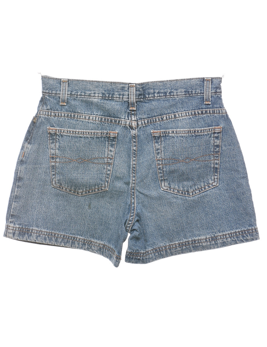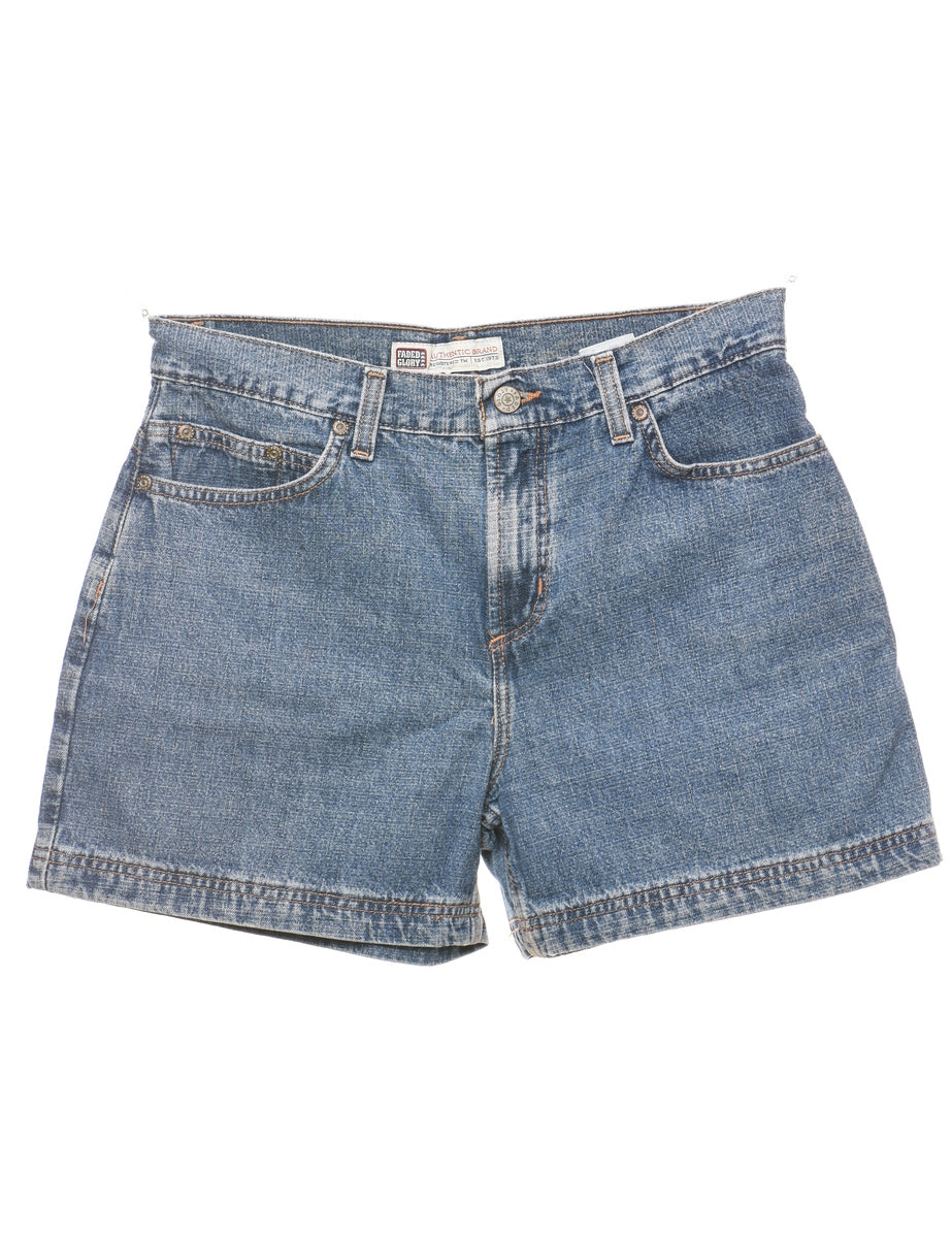 Light wash denim shorts complete with belt loops and multiple pockets.