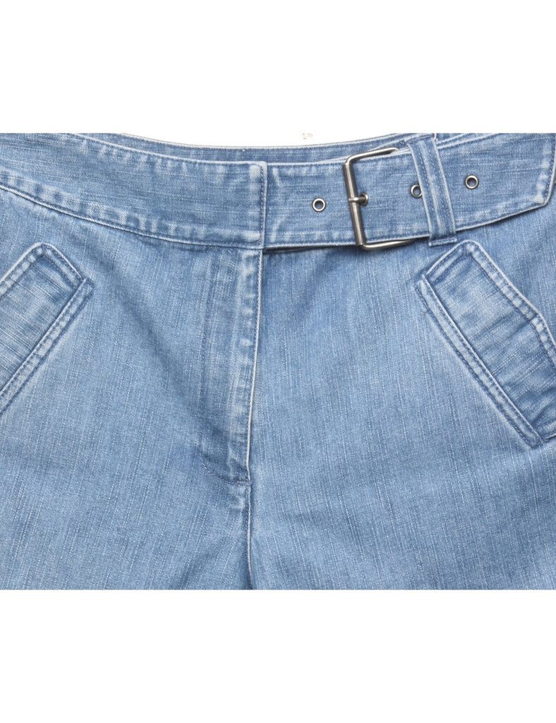 Classic denim shorts. Comes in light wash with a rolled hem and multiple pockets.