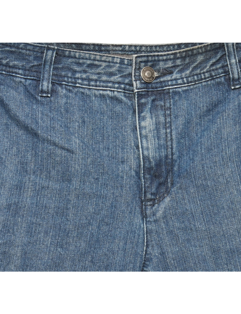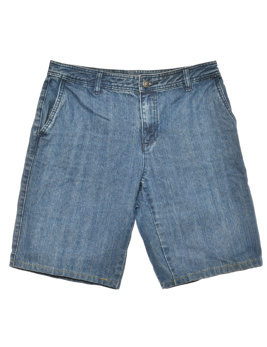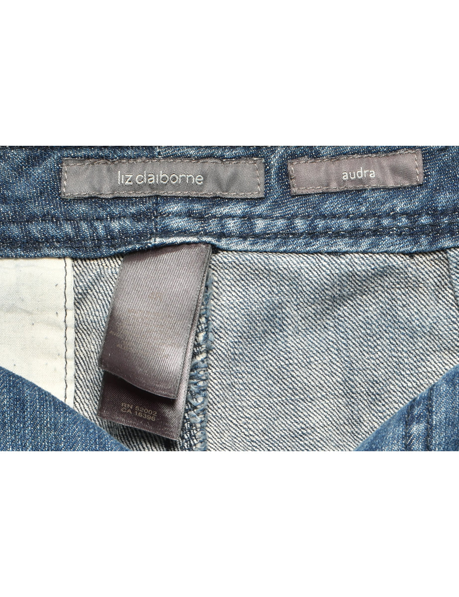 Liz Claiborne zip front denim shorts in medium wash with pockets.