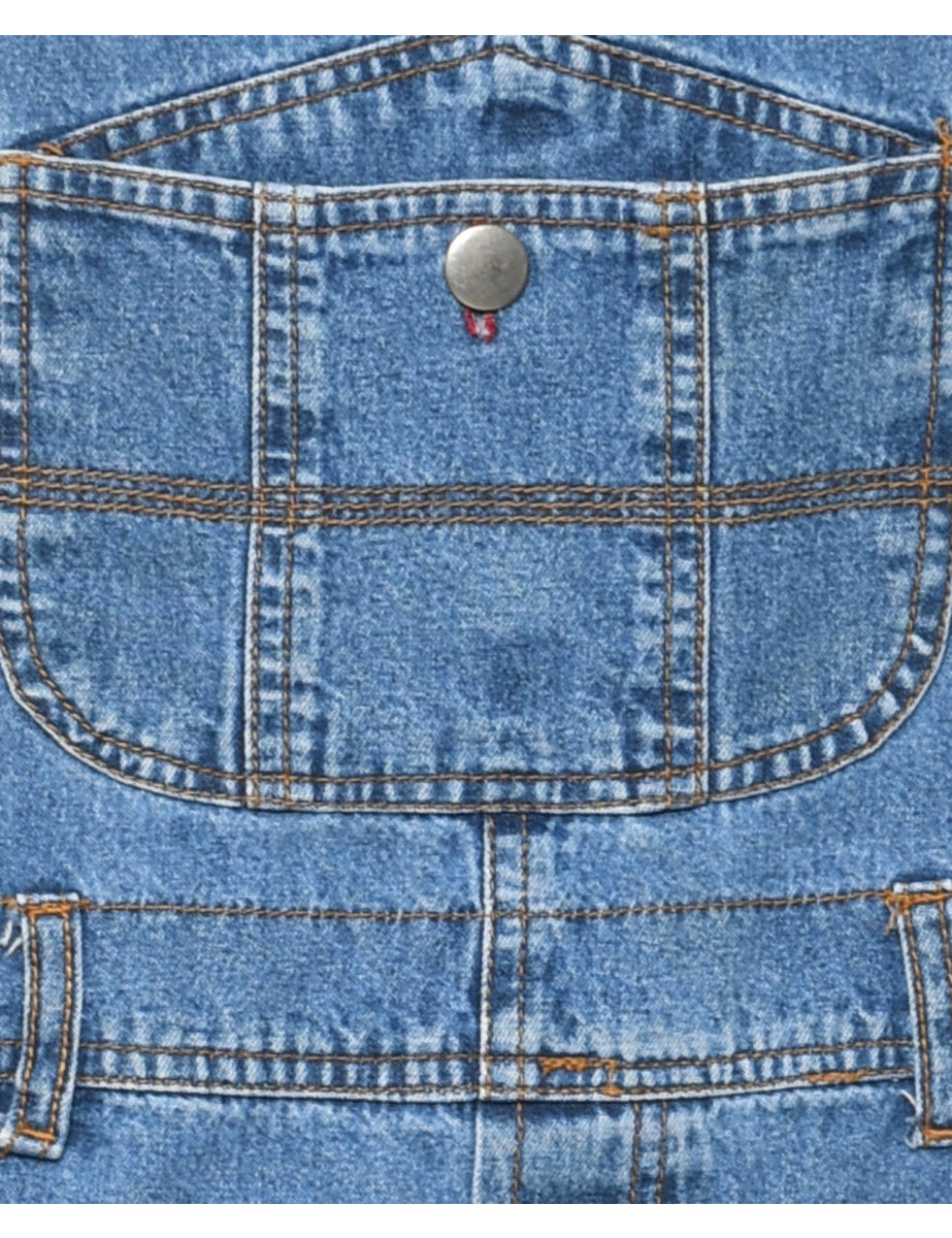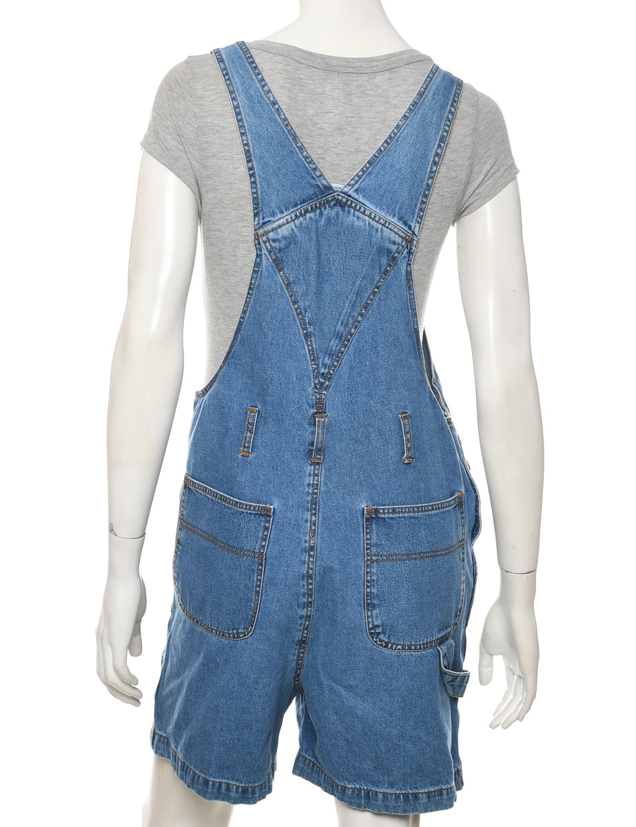 Straight leg cropped dungarees. Comes in medium wash with adjustable strap and multiple pockets.