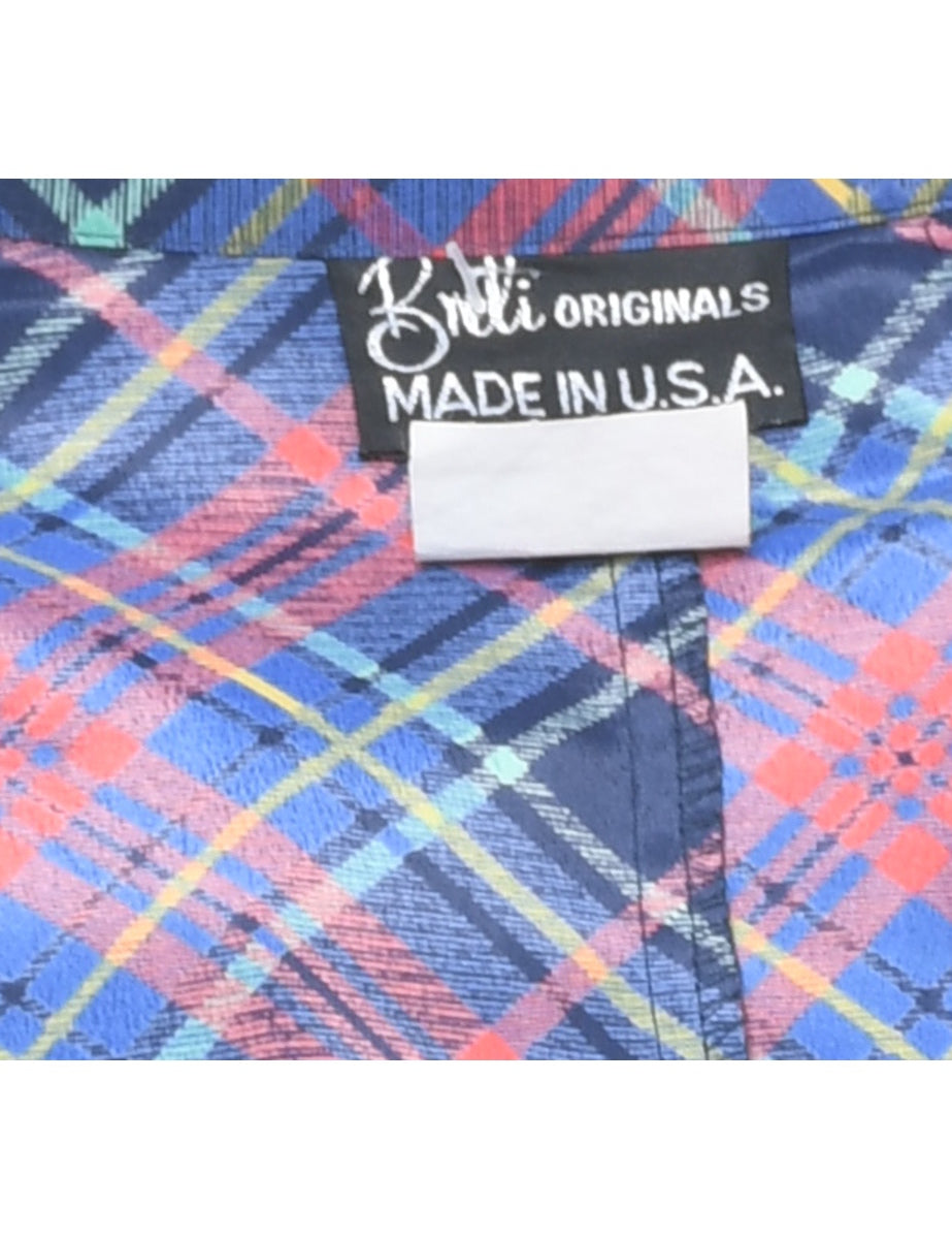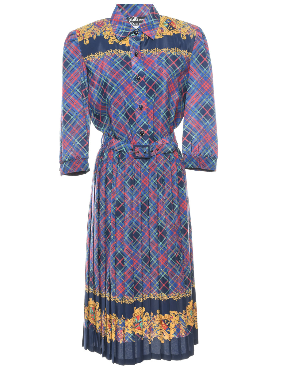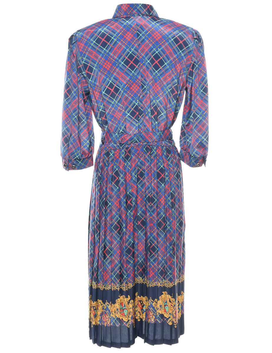 Vintage Multi-Colour Contrast Trim Checked Dress - L